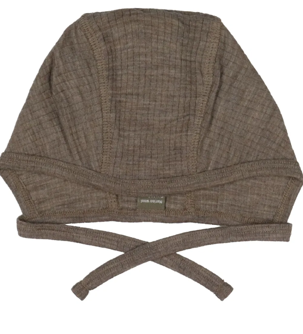 Blød Smallstuff babyhjelm i ensfarvet brun rib.