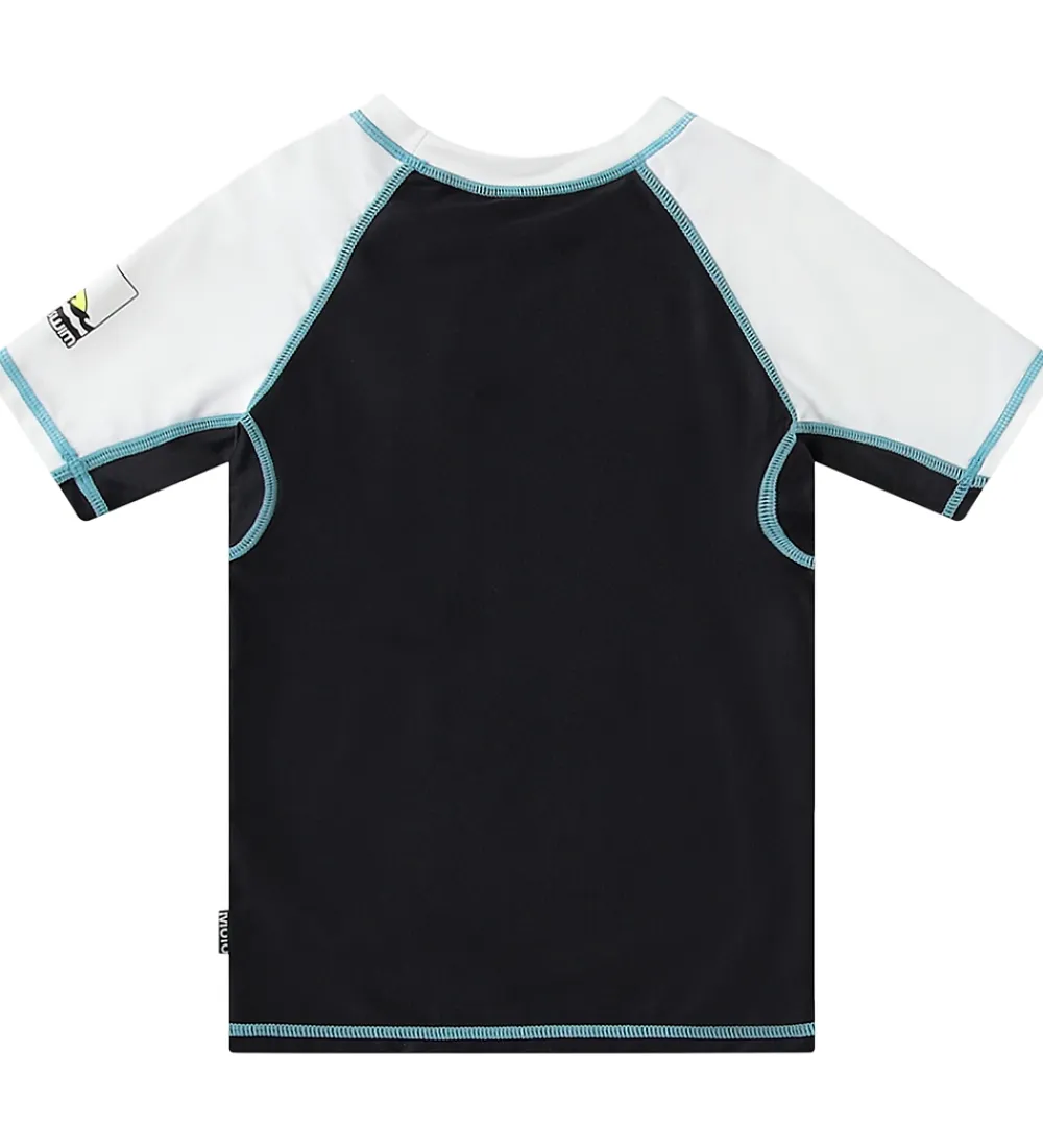 Skøn Molo badebluse med undervandsprint af forskellige fisk og havskildpadder. Badeblusen har en rund halsudskæring og korte ærmer.