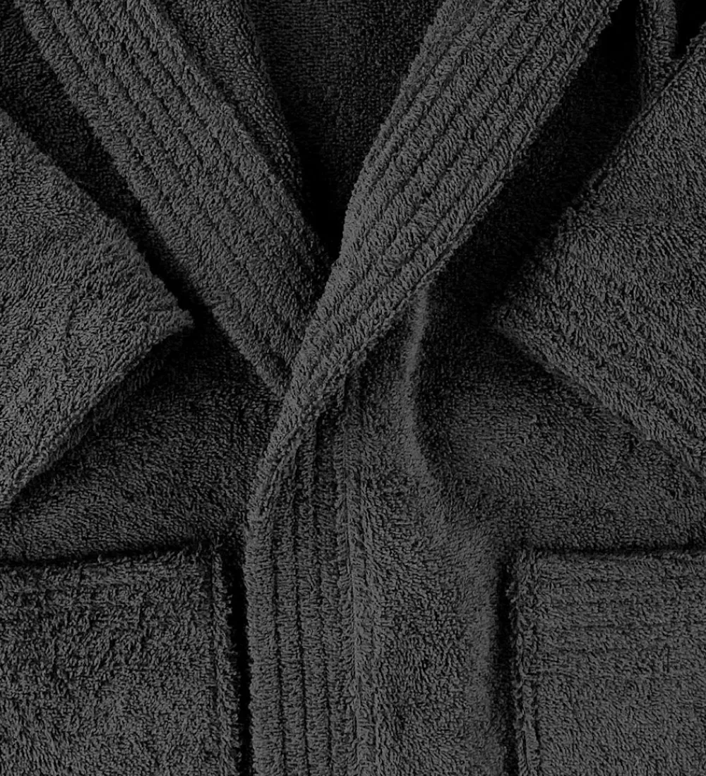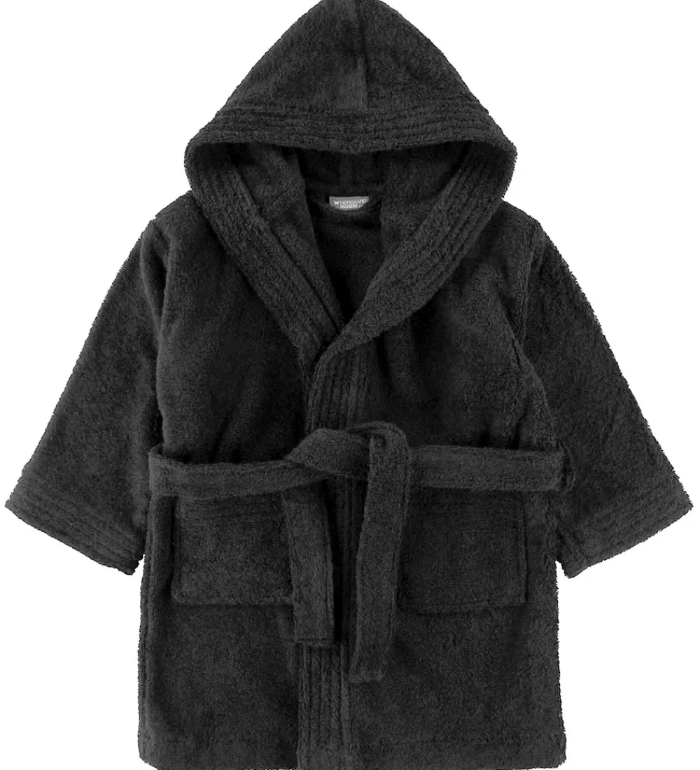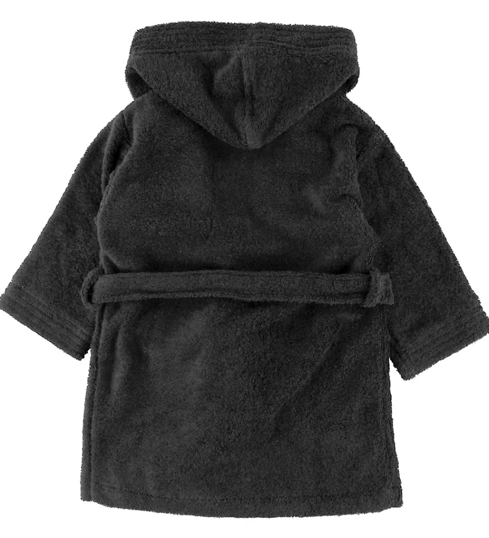 Nørgaard Madsens badekåben er lavet af blødt frotté og har en fast hætte samt lange ærmer. Badekåben bindes i livet med et bredt bindebånd, der sidder fast i siderne. Fortil er der to store, åbne lommer.
