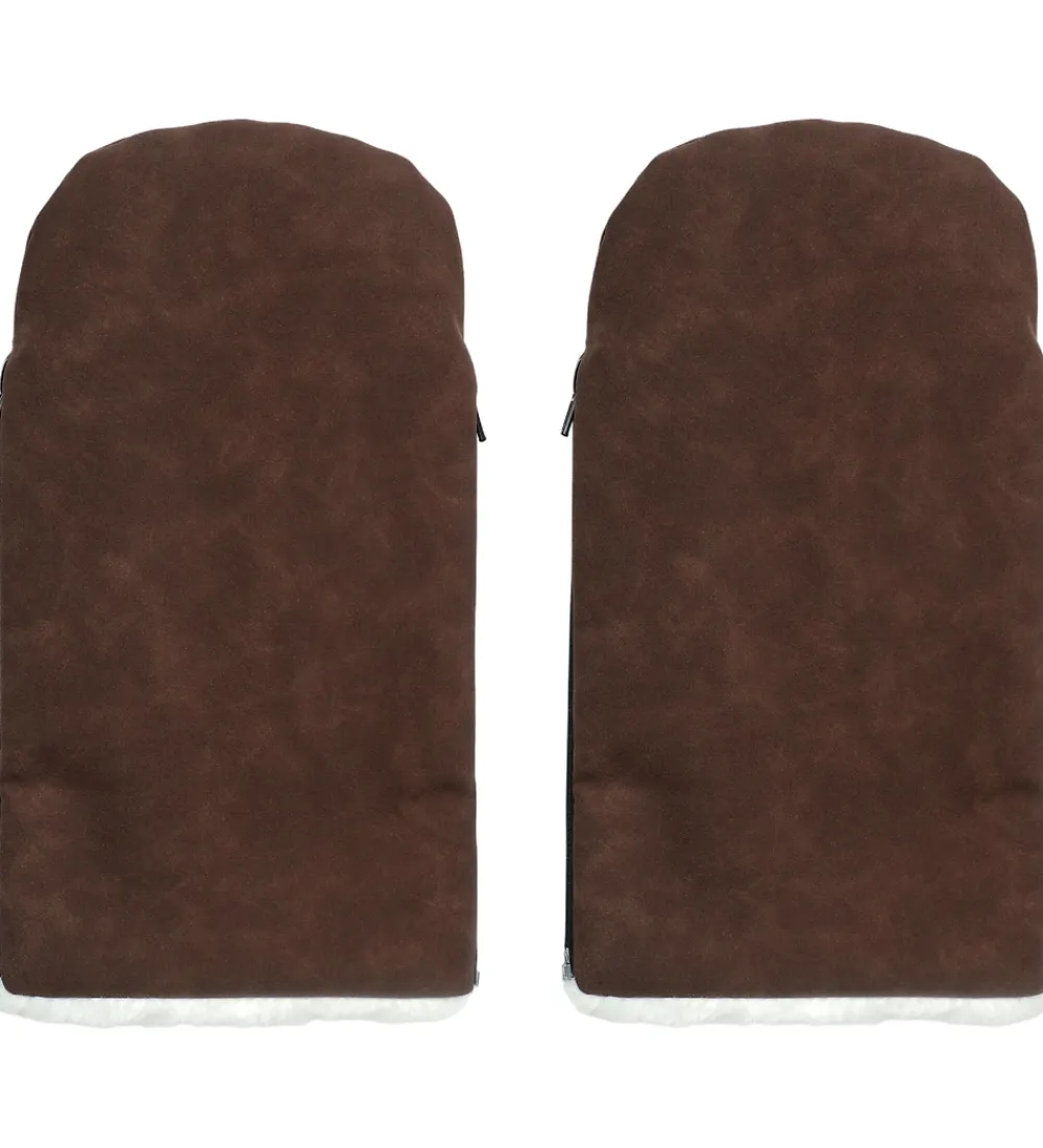 Fine Kong Walther barnevognshandsker af imiteret ruskind i ensfarvet mørkebrun.
