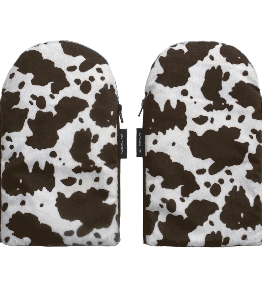Smarte Kong Walther barnevognshandsker med et flot koprint i brunt og hvidt imiteret pels.