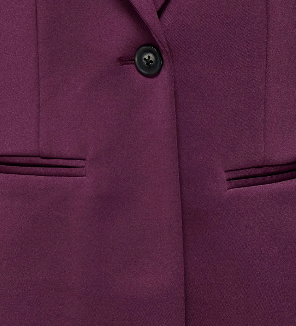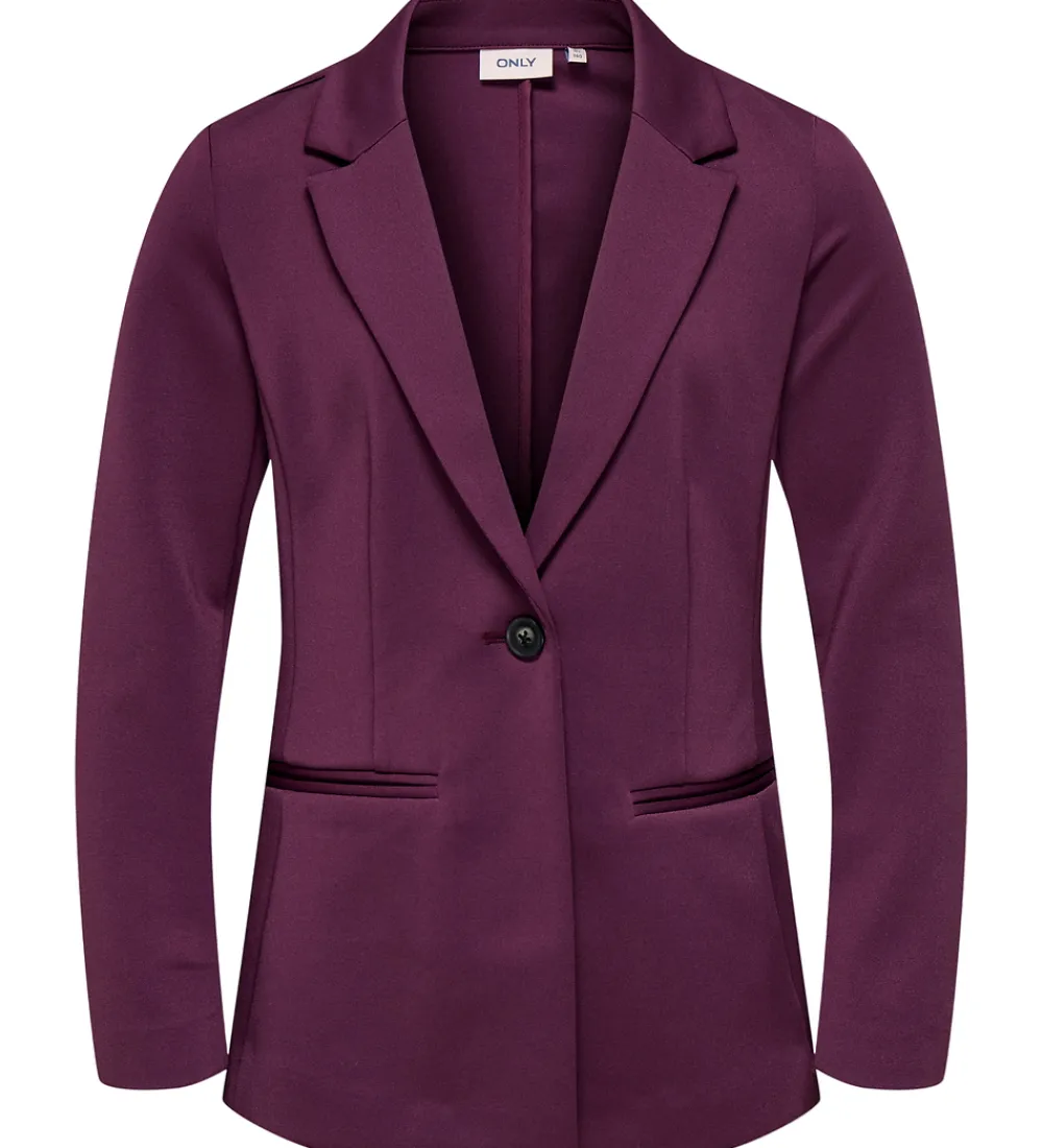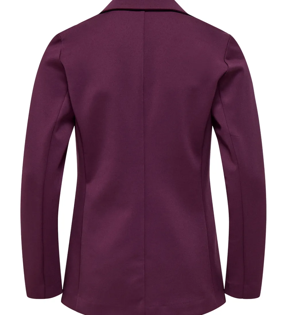Elegant Kids Only blazer i vinrød. Blazeren er faconsyet og har en klassisk krave og enkel knaplukning. Den har lange ærmer og snyde-lommer fortil.