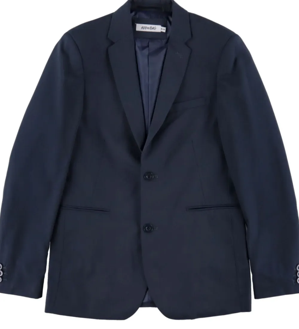 Stilfuld Add to Bag blazer i en dyb navyblå farve. Blazeren har en klassisk krave og knaplukning fortil. Den har skulderpuder og tre snyde-lommer fortil. Nederst i ærmerne er der flotte manchetknapper. Blazeren er ideel til festlige lejligheder.