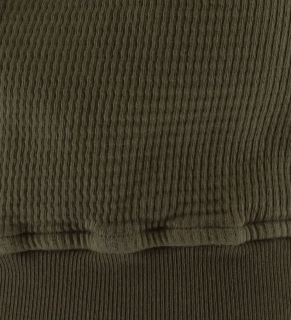 Smart Stone Island bluse i ensfarvet armygrøn med en flot vaffelstruktur. Øverst på venstre ærme sidder det ikoniske logomærke fast med knapper.