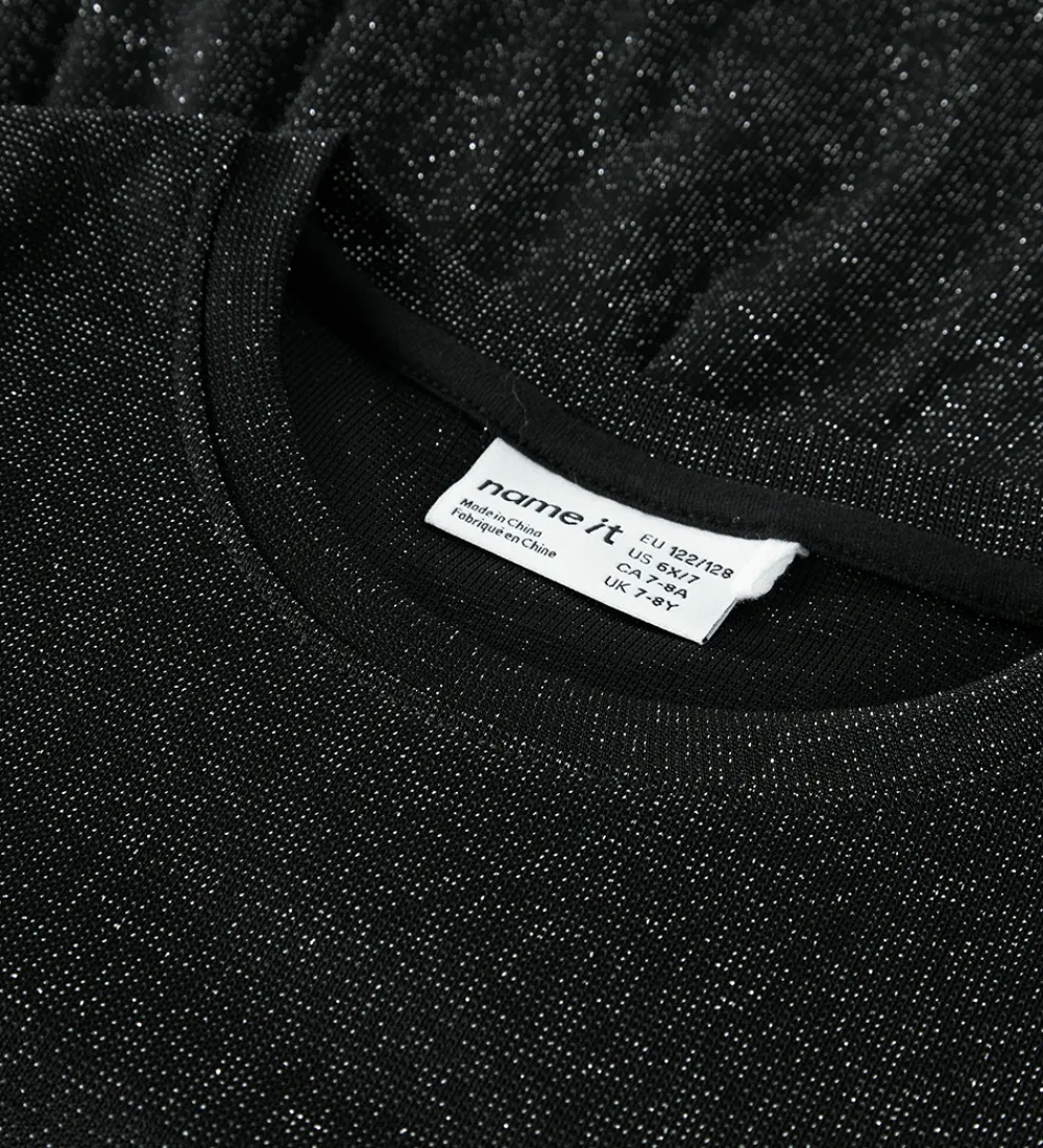 Stilfuld Name It bluse i en sort farve med glitrende detaljer, der tilfører et elegant touch. Blusen har en rund halsudskæring og lange ærmer med lette rynker ved skuldrene. Det enkle design gør denne bluse fra Name It velegnet til mange forskellige anledninger.