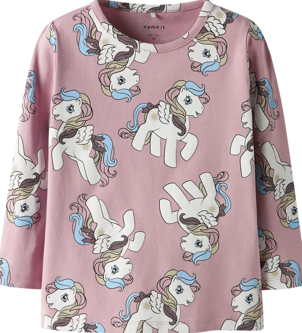 Blusen er dekoreret med et fint My Little Pony-alloverprint, som har detaljer i blå og beige nuancer. Den har en rund halsudskæring og et enkelt, klassisk snit, der gør den velegnet til forskellige lejligheder. Name It er kendt for deres kreative og børnevenlige designs.