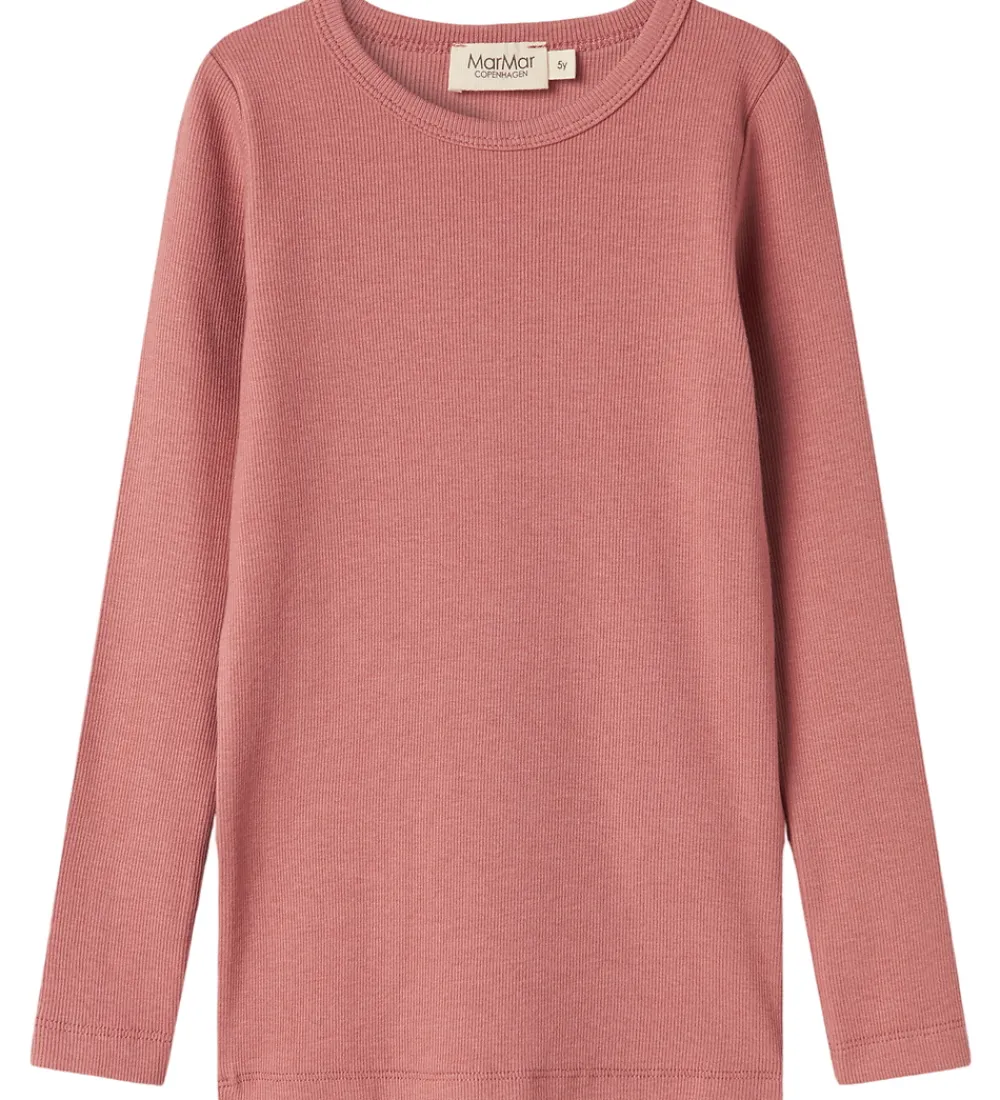Elegant MarMar bluse i en smuk støvet rosa farve. Denne langærmede bluse har en enkel, ribbet struktur, der tilføjer diskret tekstur og dybde til designet. Med en klassisk rund halsudskæring tilbyder MarMar en tidløs stil, der nemt kan integreres i garderoben.