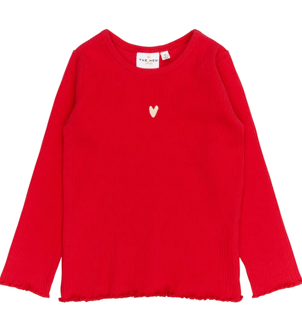 Blusen har lange ærmer og en blød, ribbet struktur, der tilføjer et enkelt touch. Et lille hjerte i en lysere farve pryder fronten og giver et subtile designaspekt. The New Siblings tilbyder her en bluse med klassisk rund halsudskæring og diskrete flæsedetaljer i kanten.