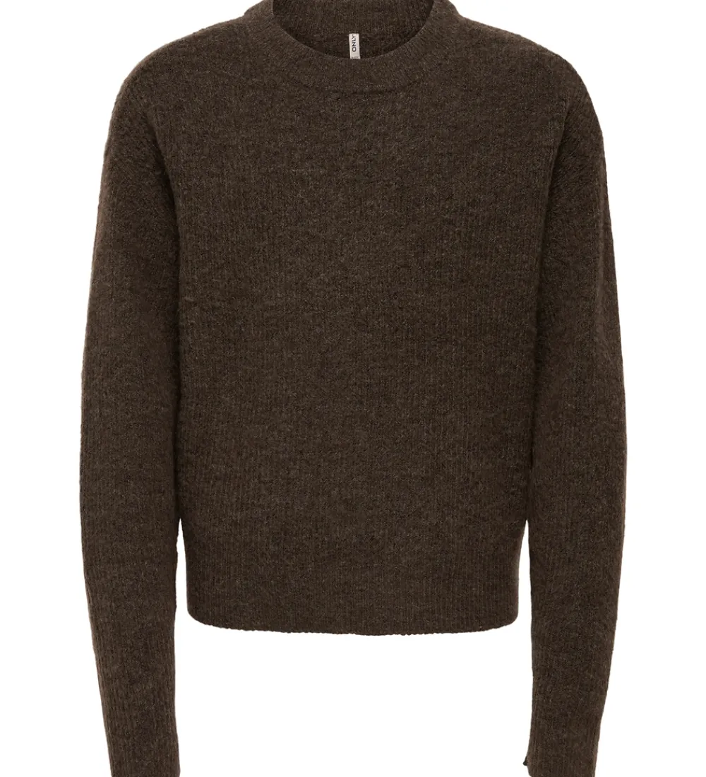 Skøn bluse fra Kids Only i mørkebrun med ribstrikket struktur. Blusen har en rund halsudskæring, lange ærmer og ribkanter ved alle åbninger. Den er fremstillet i en meget blød kvalitet.