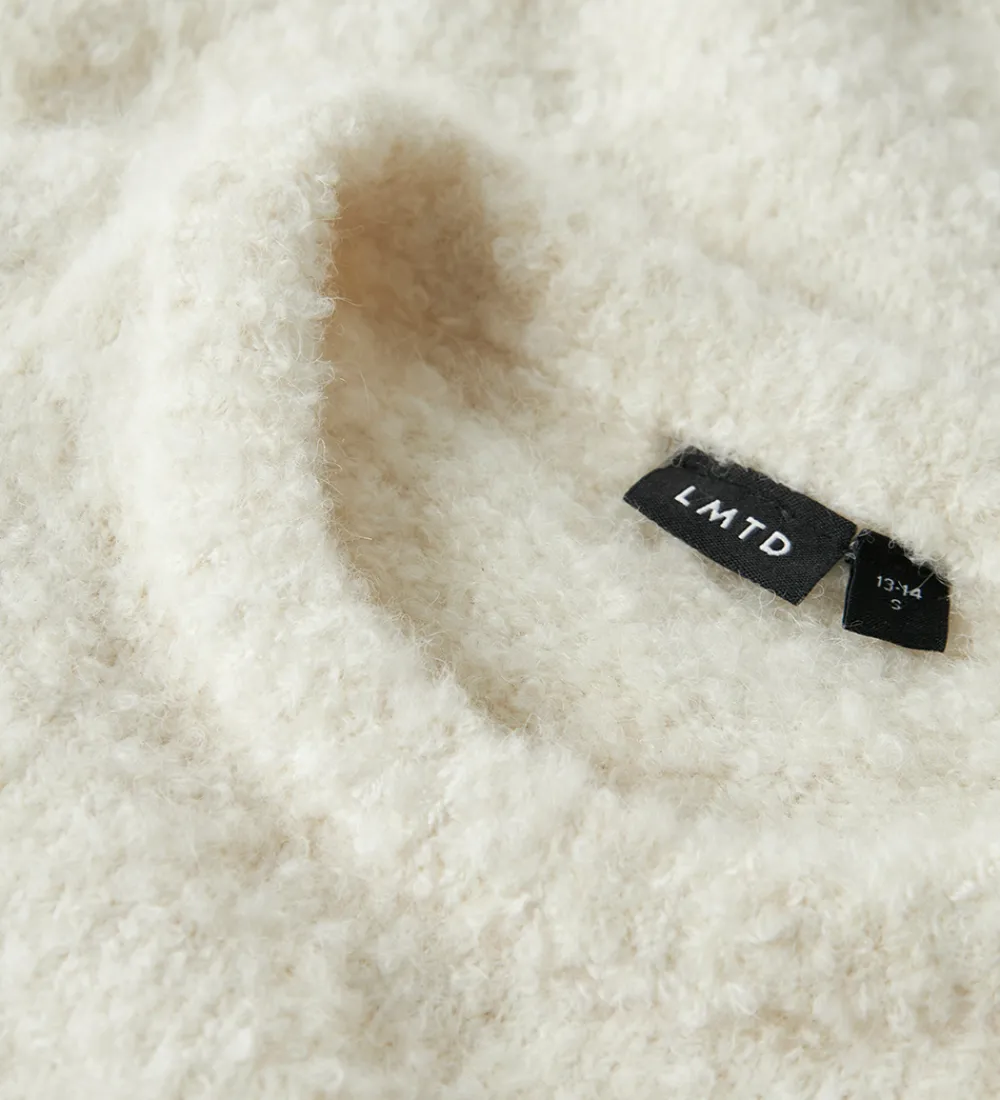 Lækker bluse fra LMTD i hvid strik med krøllet struktur. LMTD blusen har en rund halsudskæring og lange ærmer.