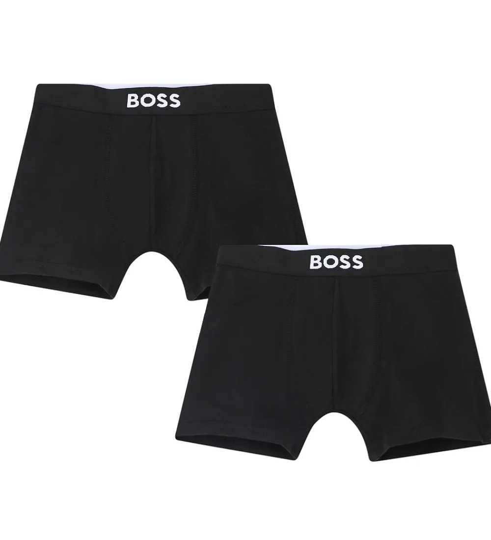 Elegante BOSS boxershorts i en pakke med to par i sort. BOSS boxershortsene har en elastikkant med et hvidt logo, som giver en sikker pasform.