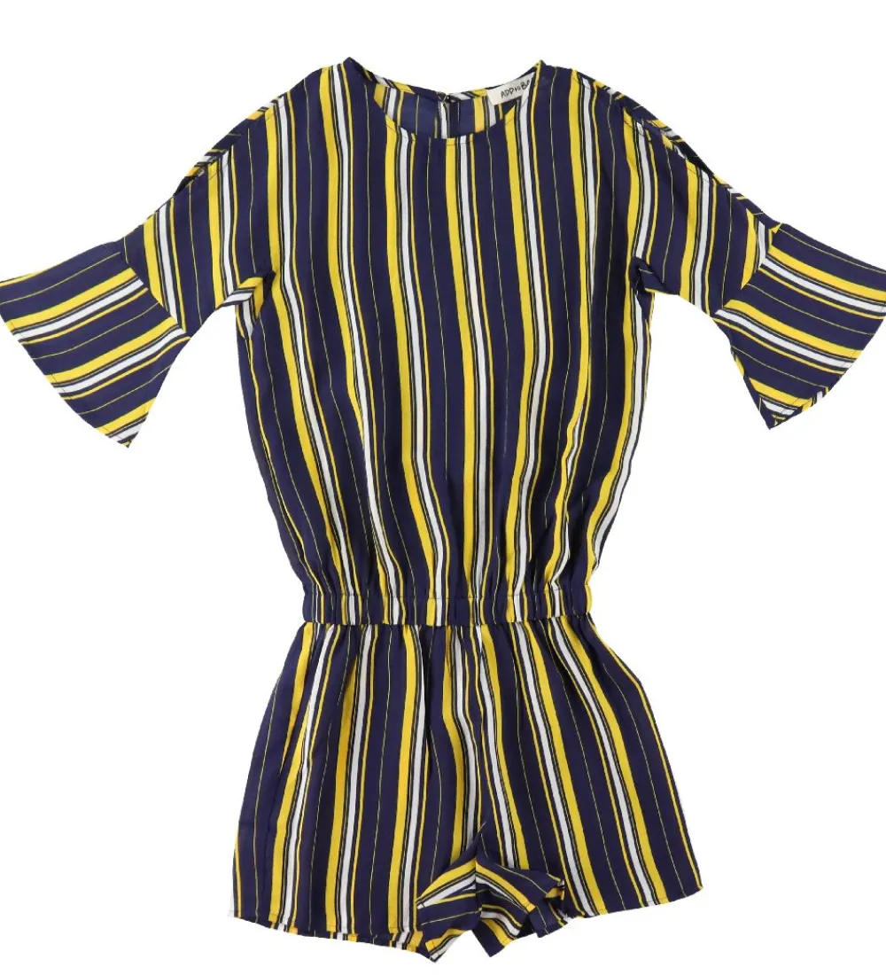 Sej Add to Bag buksedragt i med lodrette striber i gul, navyblå og hvid.