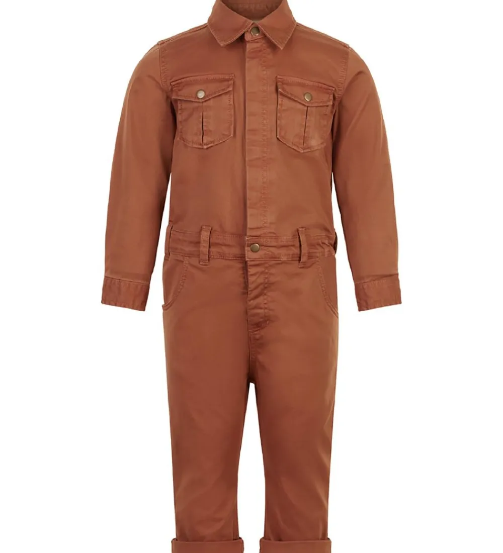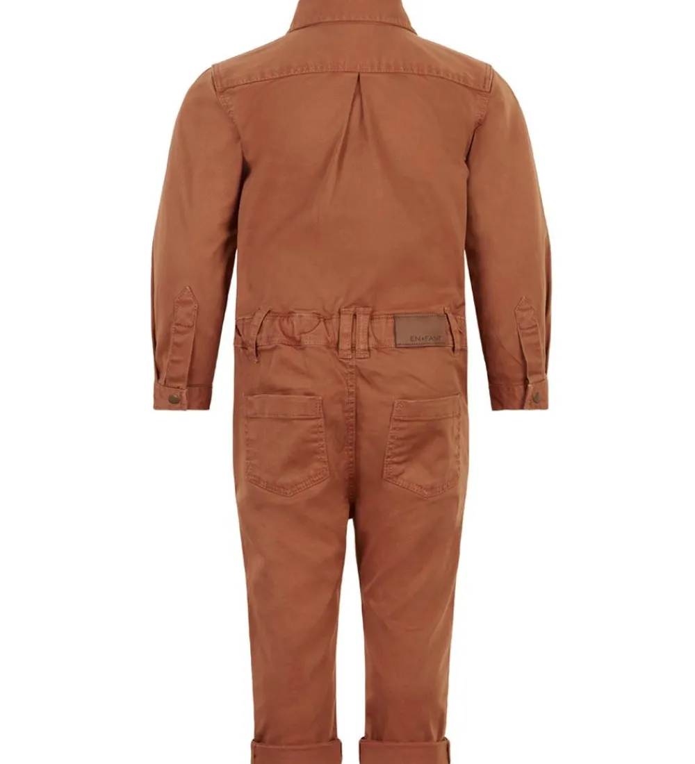 En Fant buksedragten har lange ærmer og ben og den åbnes fortil med praktiske trykknapper i halsen og helt ned til livet. Fortil er der to store brystlommer, som åbnes med trykknapper og yderligere to store, åbne lommer i siderne af taljen. Bagpå er der også to lommer i taljen og i taljen er der praktiske bæltestropper. I halsen er der en klassisk krave og på bagsiden af ærmerne er der en trykknap, så ærmerne let kan smøges op. I taljen kan de justeres med indvendige elastikker.