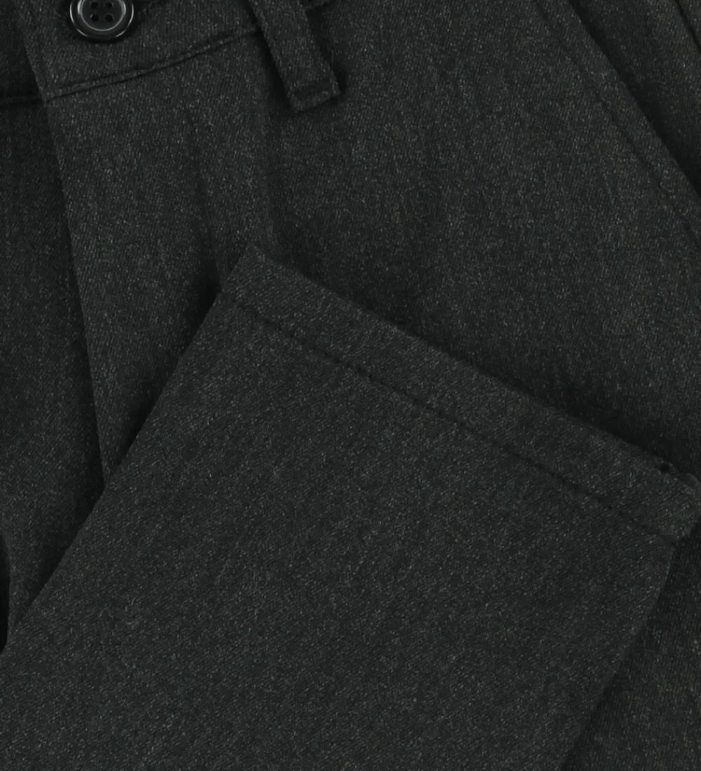 Grunt bukserne har lange ben, og de har indvendige justerbar knapper og bæltestropper i livet. På fronten er der to åbne lommer og bagpå er der to snyde lommer. Bukserne åbnes på fronten med en knap og en lynlås.