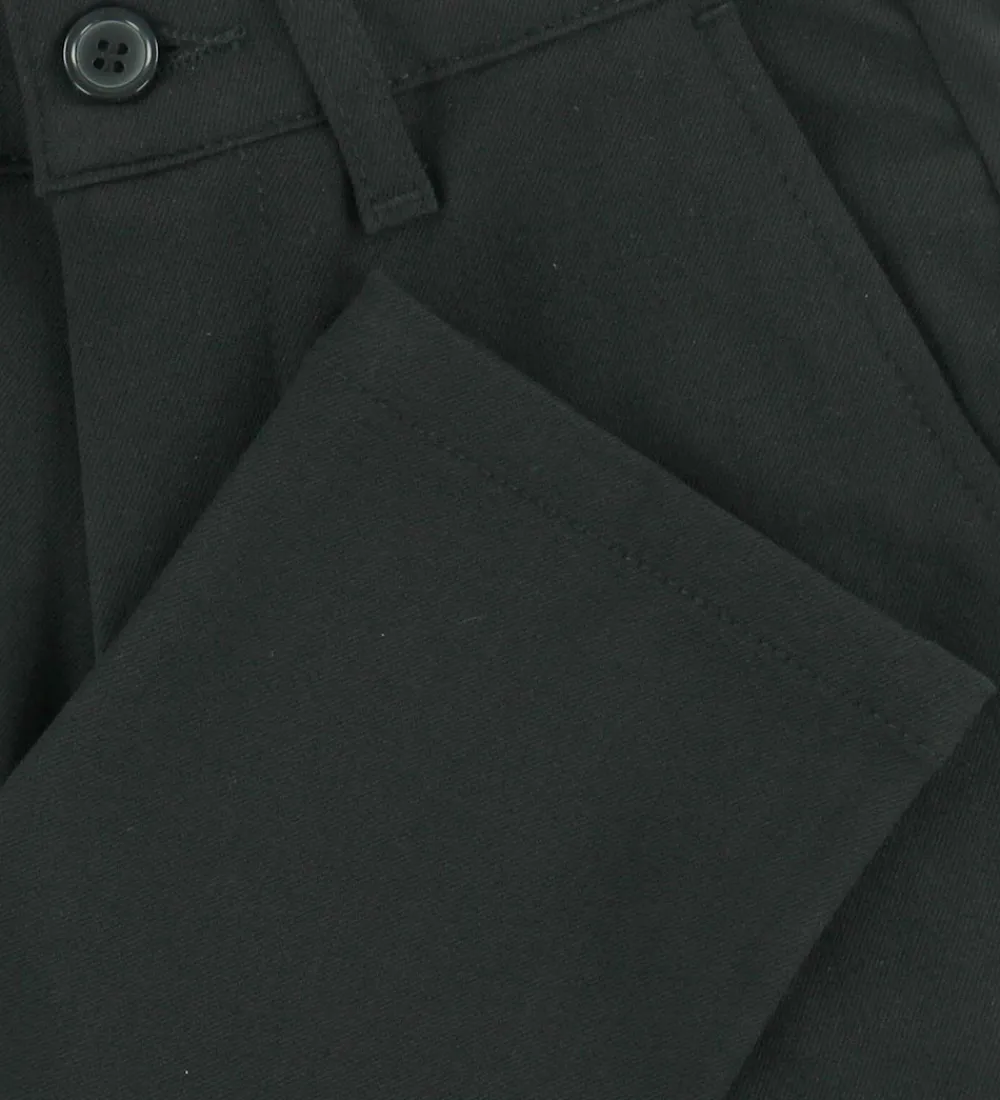 Grunt bukserne har lange ben, og de har indvendige justerbar knapper og bæltestropper i livet. På fronten er der to åbne lommer og bagpå er der to snyde lommer. Bukserne åbnes på fronten med en knap og en lynlås.