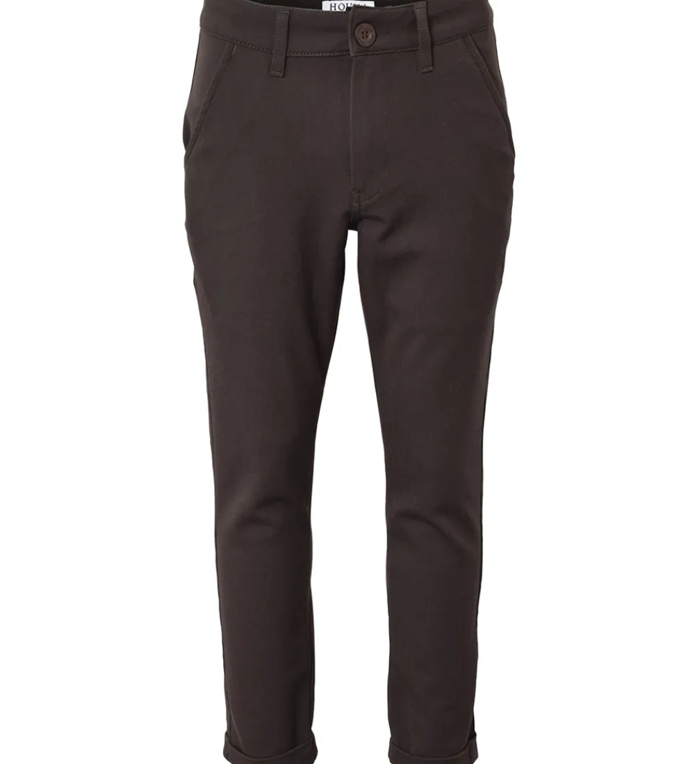 Lækre Hound bukser i en mørkebrun og strækbar kvalitet.