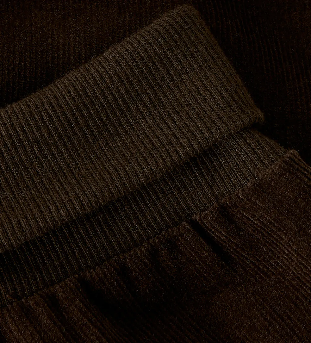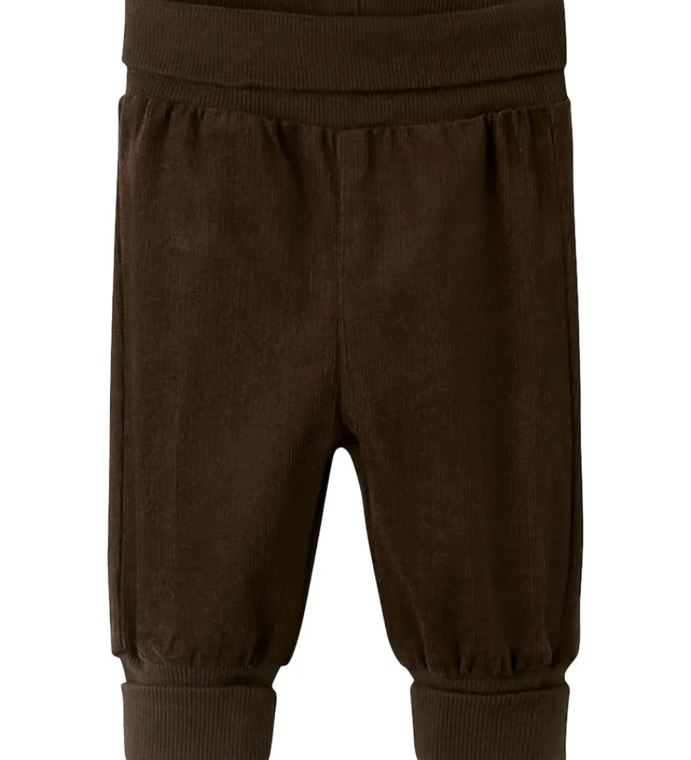 Seje fløjlsbukser fra Name It i mørkebrun. Name It fløjlsbukserne har en bred elastisk kant ved livet og ved anklerne, som sikrer en behagelig pasform.