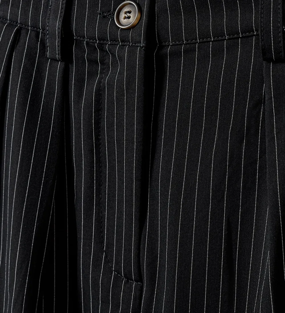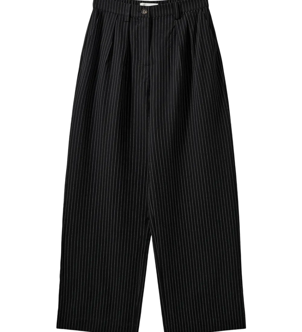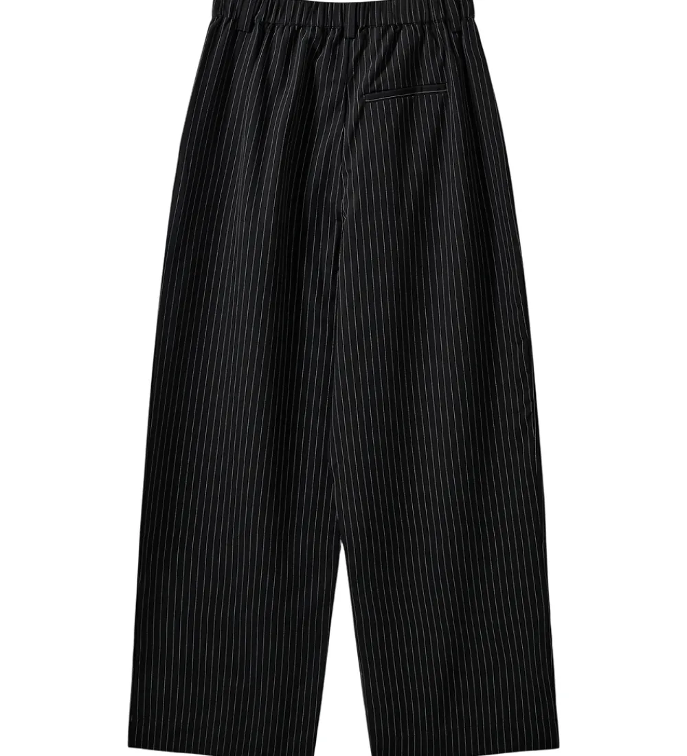 Stilfulde bukser fra Sofie Schnoor i en klassisk sort farve med smalle, vertikale hvide striber.