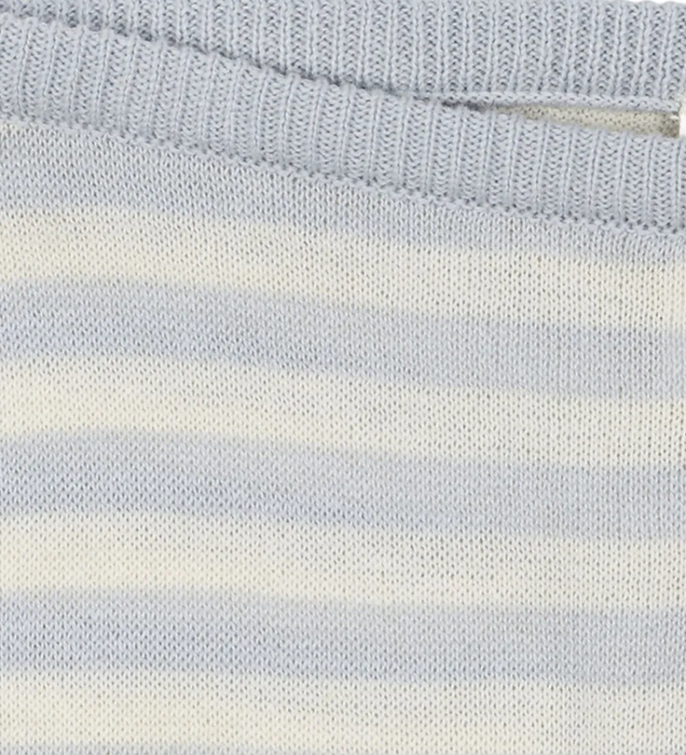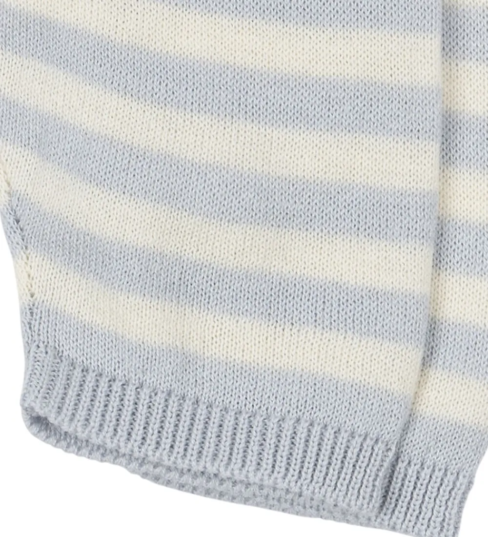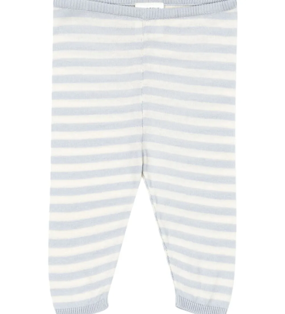 Behagelige bukser fra Fanga Fontana strikket i et klassisk stribemønster i cremehvid og lyseblå. Fanga Fontana bukserne er designet med en elastisk talje for optimal pasform. Benene afsluttes med ribkanter, som giver bukserne en klassisk afslutning.