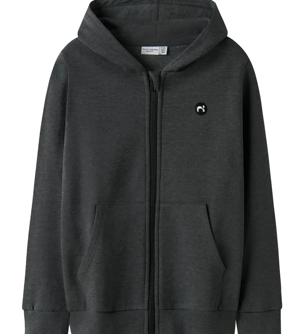 Stilfuld Name It cardigan i en meleret, mørkegrå nuance.