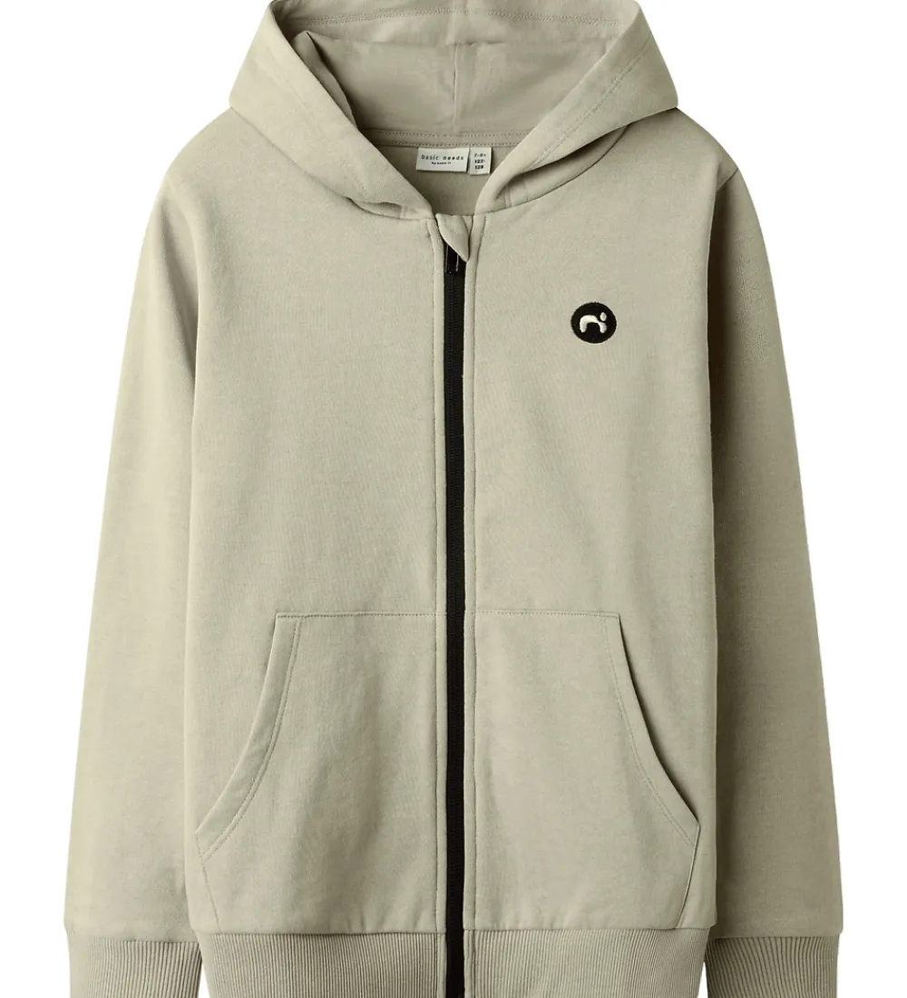 Funktionel Name It cardigan i en blød, beige nuance med lange ærmer og hætte.