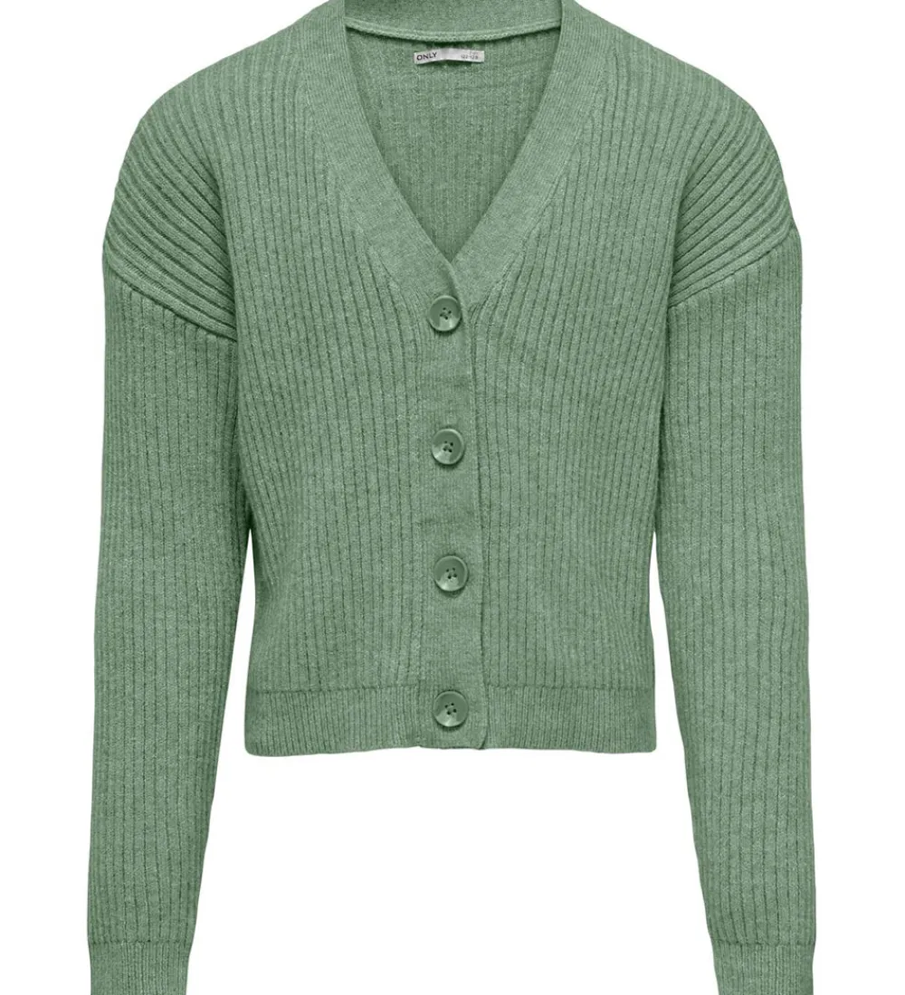 Skøn Kids Only cardigan i grøn med en lækker ribstrikket struktur.