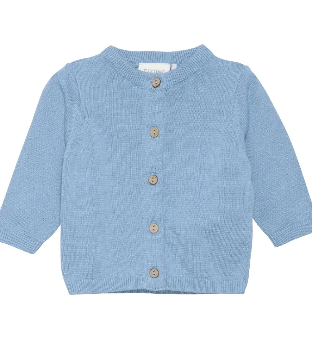 Fed Fixoni cardigan i en lyseblå strikstruktur.