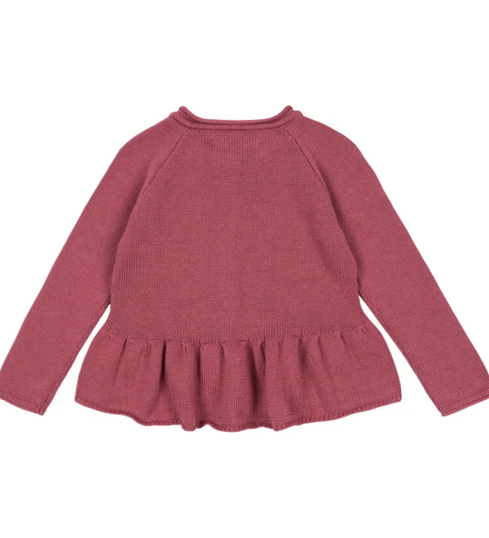 Smuk Konges Sløjd cardigan i en dyb, mørkerosa nuance med et fint hulmønster på fronten.