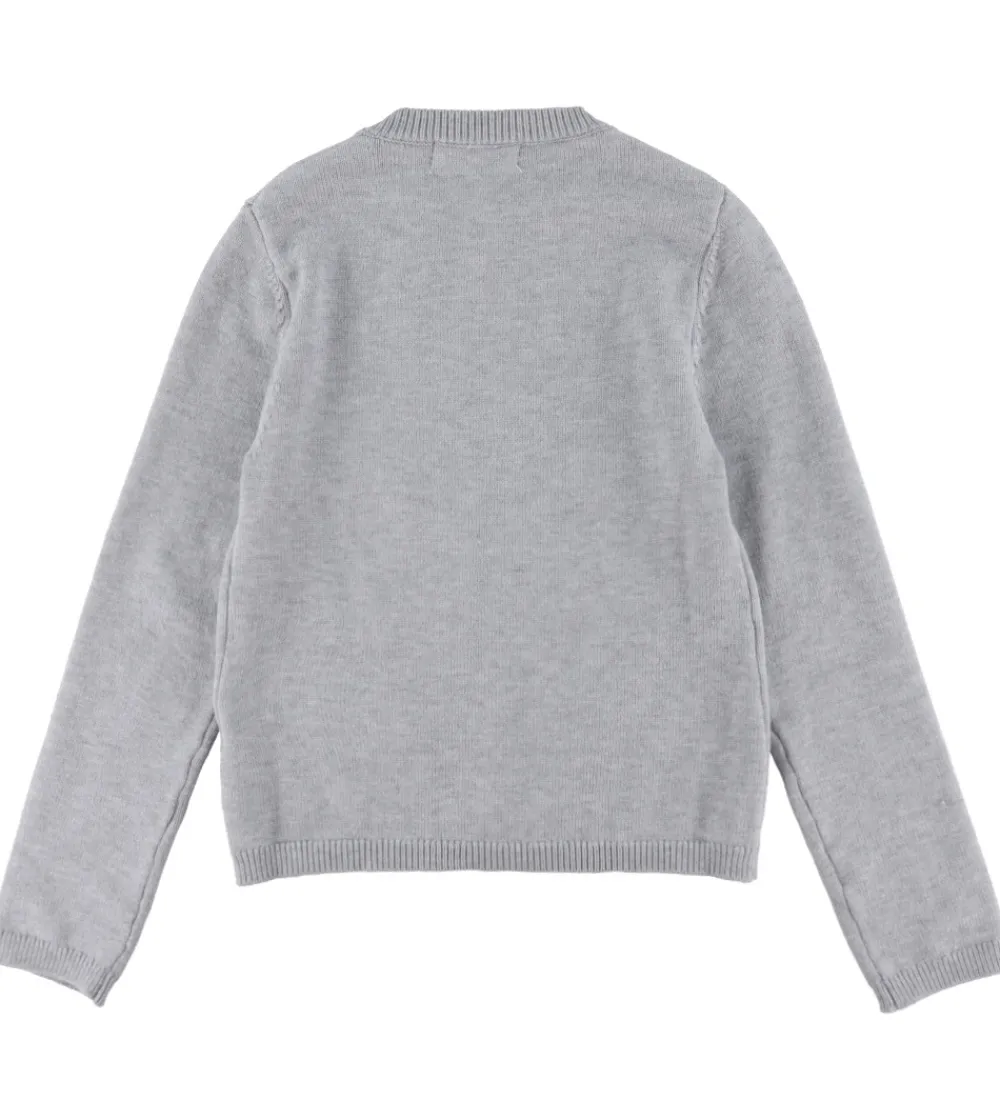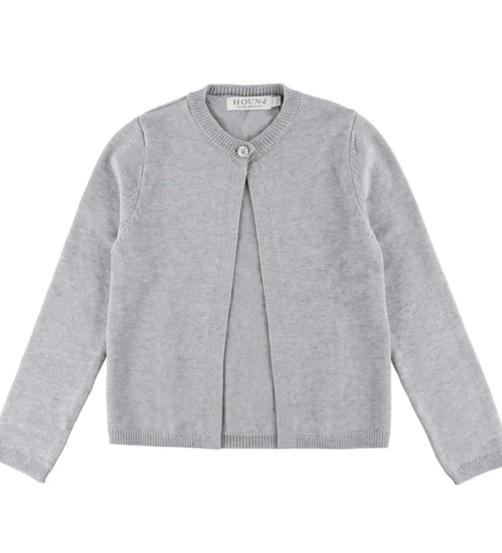 Stilfuld Hound cardigan i en lysegrå strik med en klassisk, enkel struktur. Cardiganen har ribkanter ved alle åbningerne, der tilføjer en klassisk detalje.