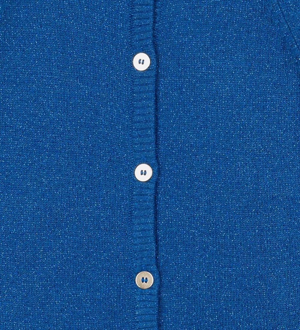 Attraktiv Cardigan med lange ærmer fra The New i en dyb blå nuance med glitter og en strikket struktur. Den har en enkel knaplukning og et tidløst design, der gør den ideel til forskellige anledninger.