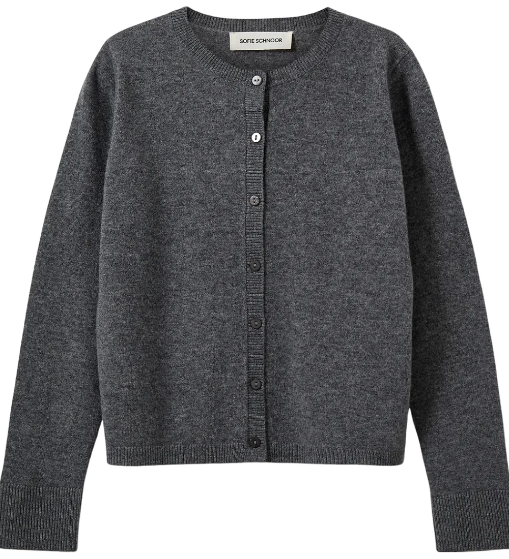 Stilfuld Sofie Schnoor cardigan i meleret mørkegrå strik.