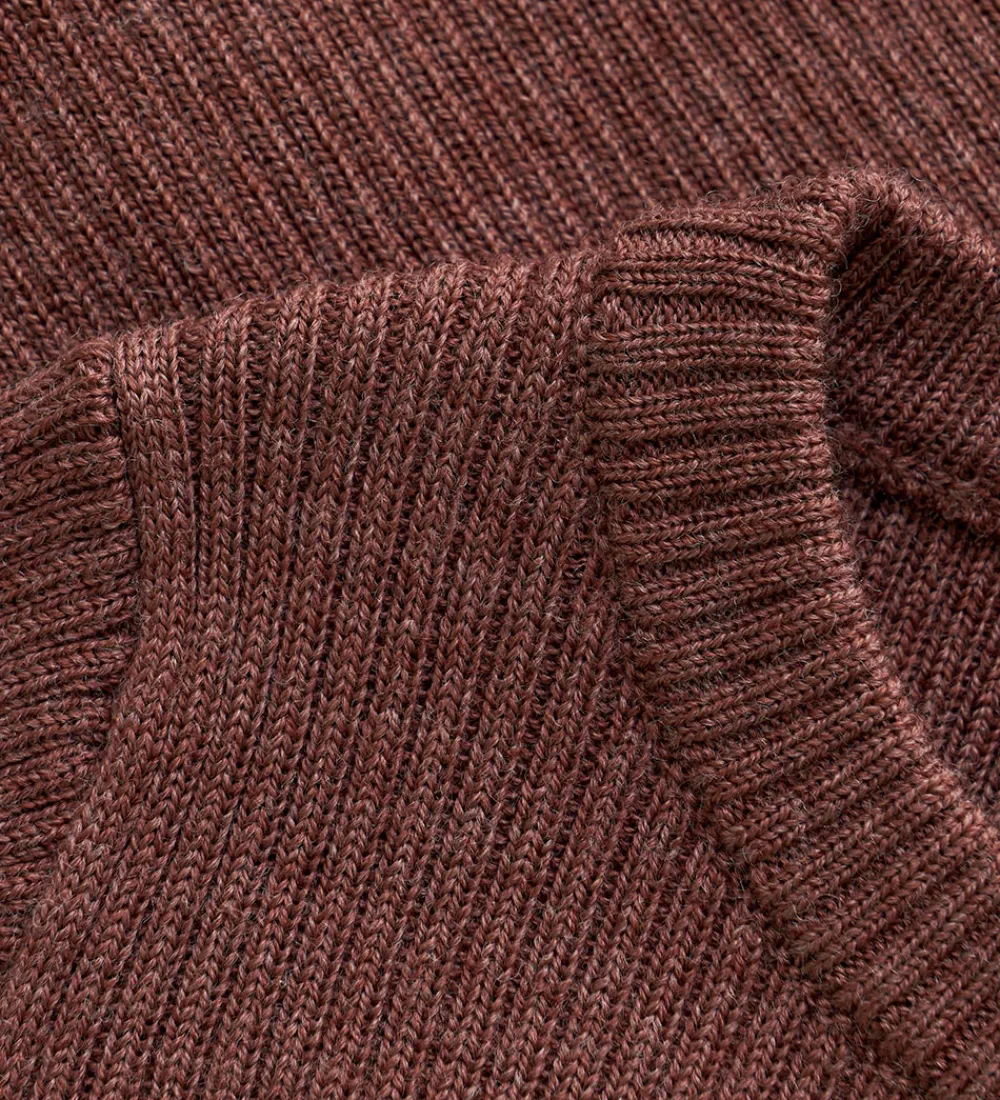 Skøn CeLaVi cardigan i ensfarvet rødbrun, og den er lavet af blødt og lækker merinould med ribstruktur.