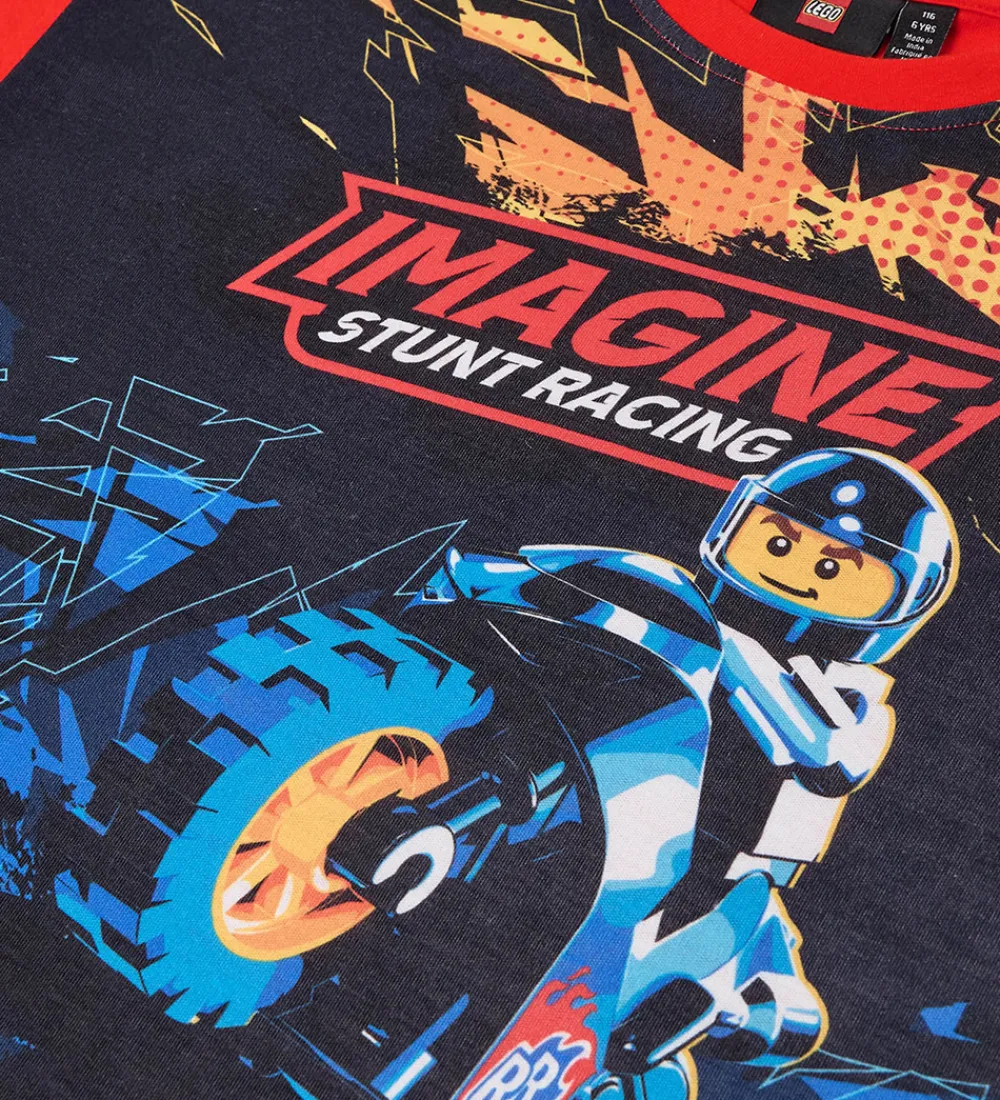 Cool LEGO® Wear City t-shirt i rød med et sejt stunt racing-print på fronten i flotte farver.