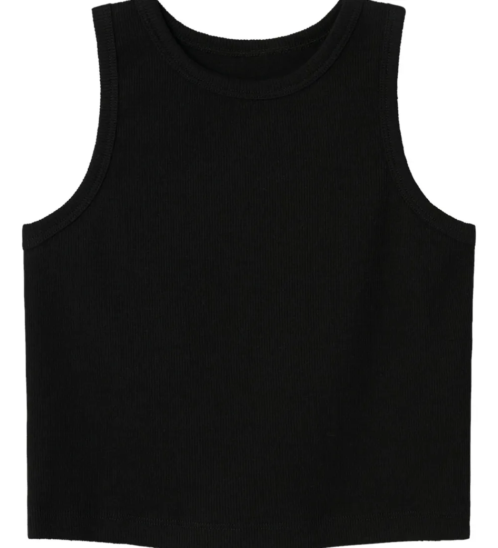 Skøn Name It top i ensfarvet sort med ribstruktur.