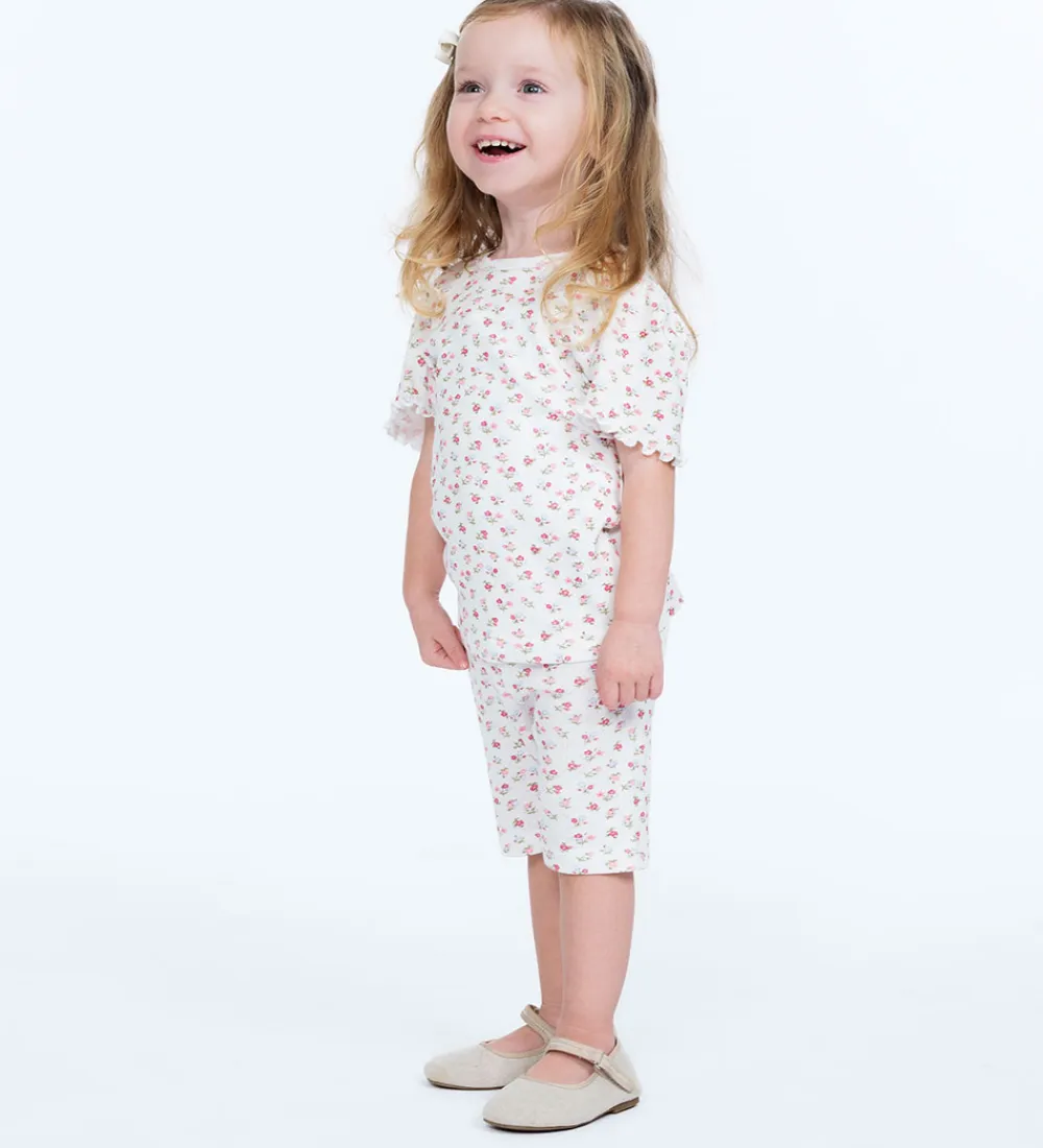 Delikate Hust and Claire cykelshorts med et smukt blomstermønster i rosa, blå og hvide nuancer. Hust and Claire cykelshortsene har en elastisk kant i livet, der sikrer en god pasform. Stoffet har en let og behagelig struktur, velegnet til enhver begivenhed.
