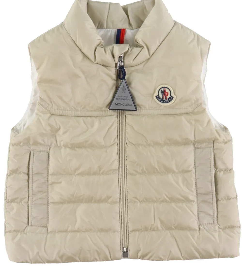 Lækker Moncler dunvest i lys beige.