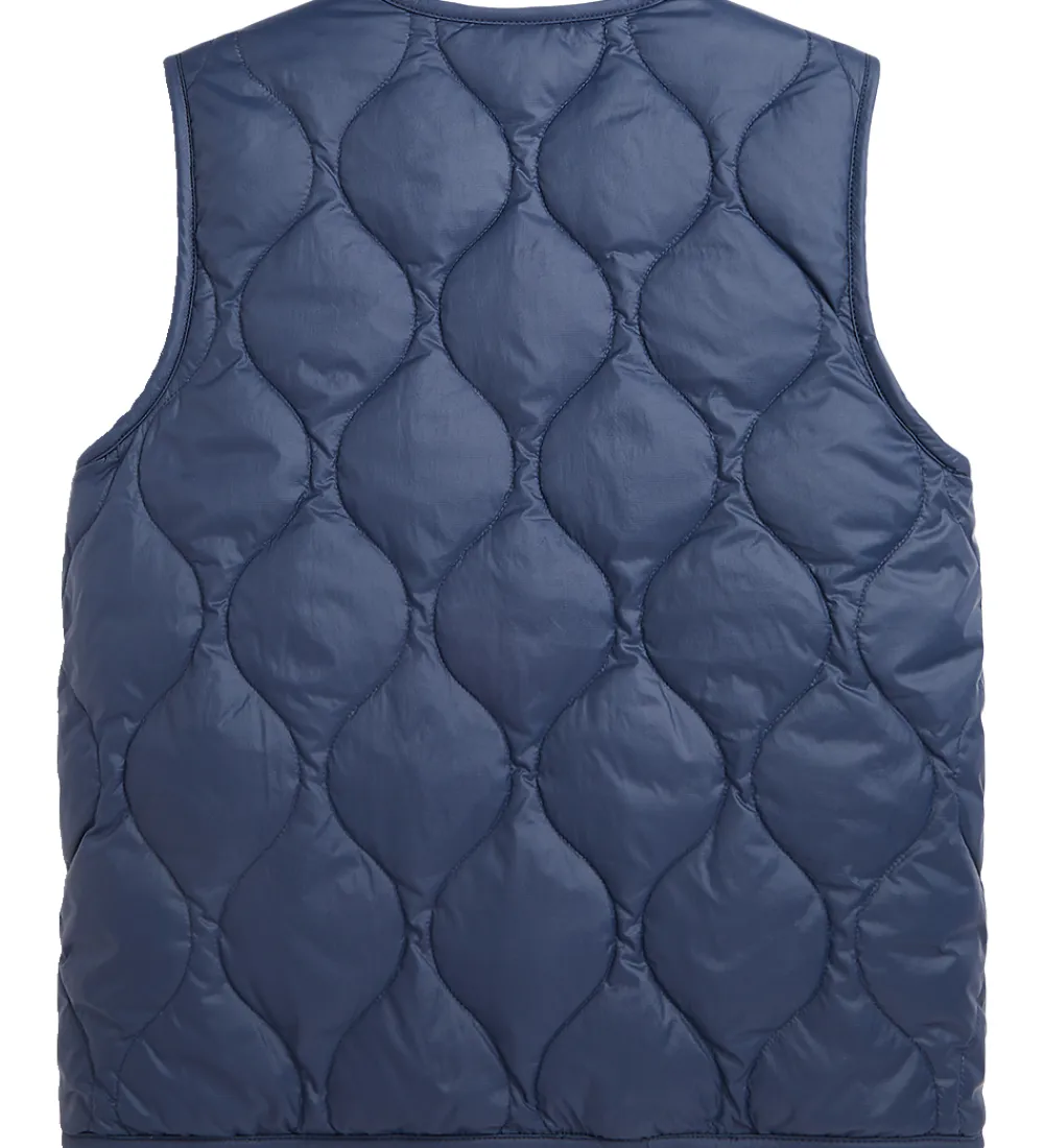 Polo Ralph Lauren dunvesten har en V-udskæring, og den lukkes med trykknapper i kobberfarvet metal. På begge sider er der praktiske lommer. Dunvesten er vatteret med lune dun og fjer, og den har fået en vandafvisende behandling, så vand ikke så let trænger igennem.