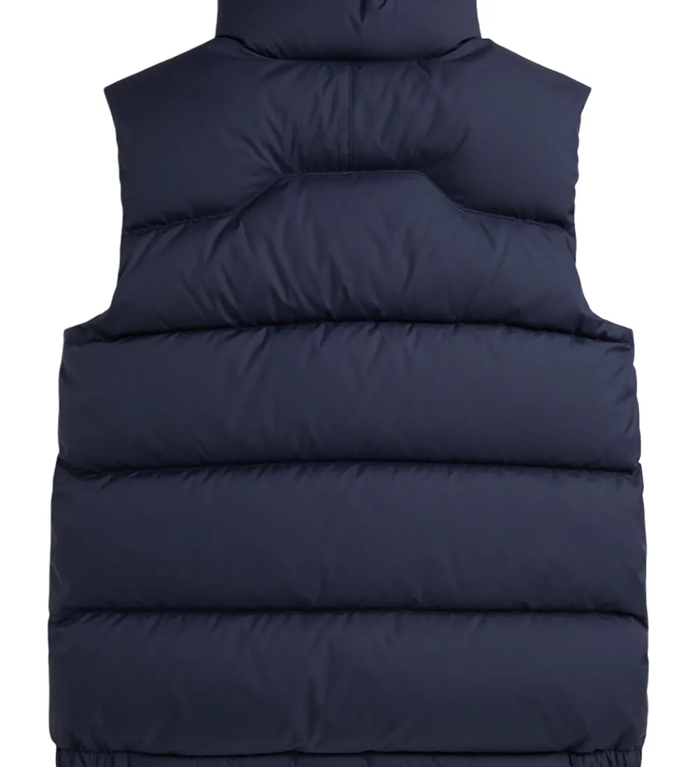 Lækker Polo Ralph Lauren dunvest i ensfarvet navy med et lille, rødt logo broderet fortil.