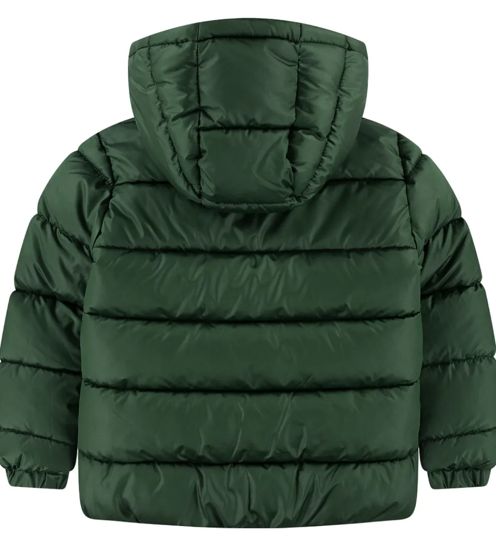 Elegant Nike dynejakke i dyb grøn med et hvidt logo på venstre bryst. Dynejakken har et moderne, vandret quiltet mønster, som tilføjer et tidløst udseende.