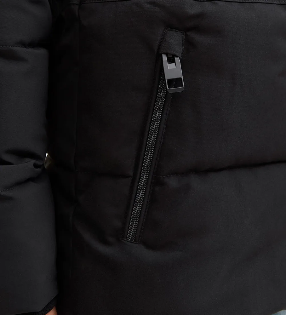 Jack & Jones dynejakken er udstyret med tre lynlåslommer på fronten samt en inderlommer i venstre side, hvilket giver praktiske opbevaringsmuligheder. Ærmerne afsluttes med ribkanter og snefang.