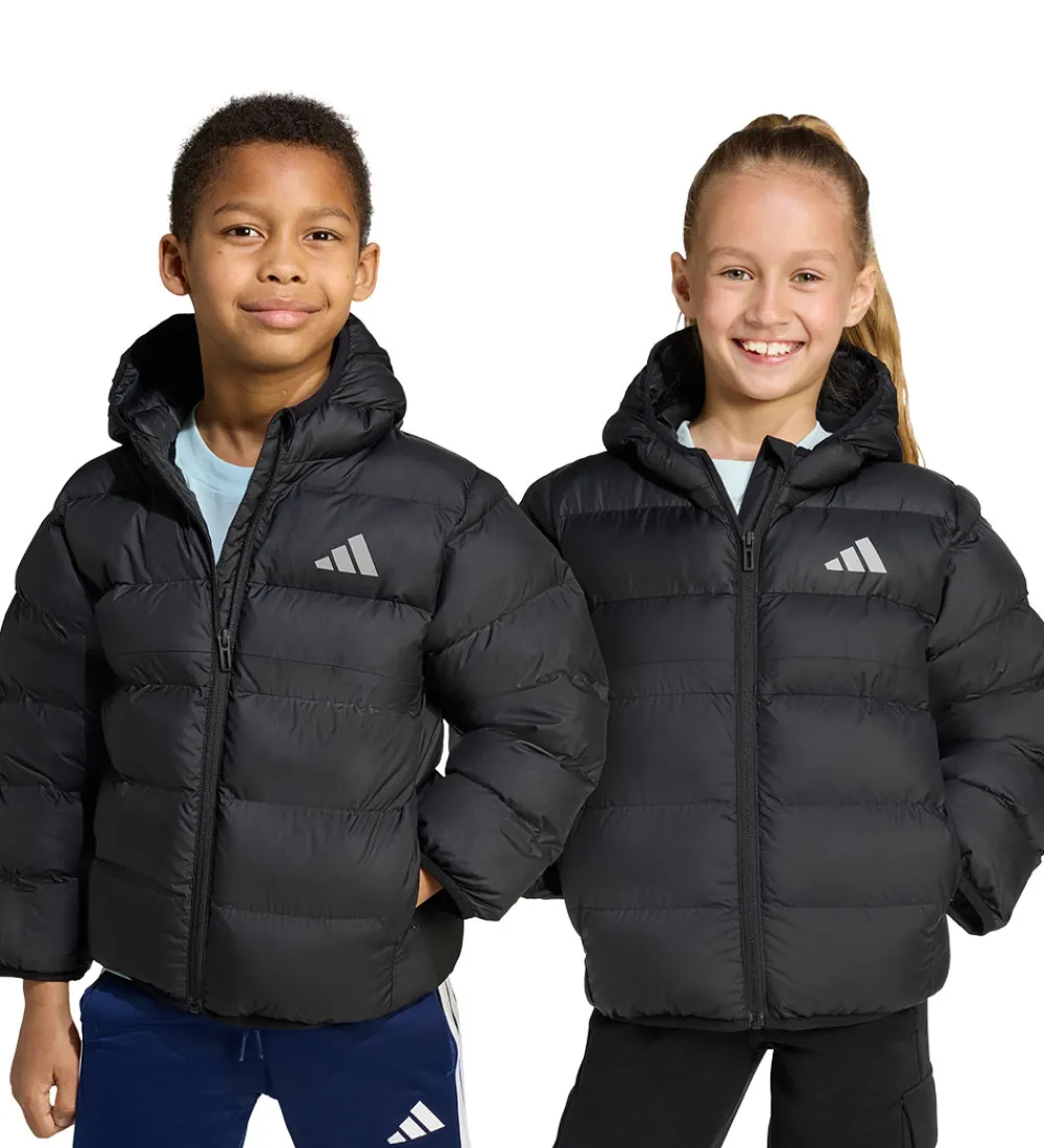 Lækker adidas Performance dynejakke i ensfarvet sort med et adidas Performance-logo.
