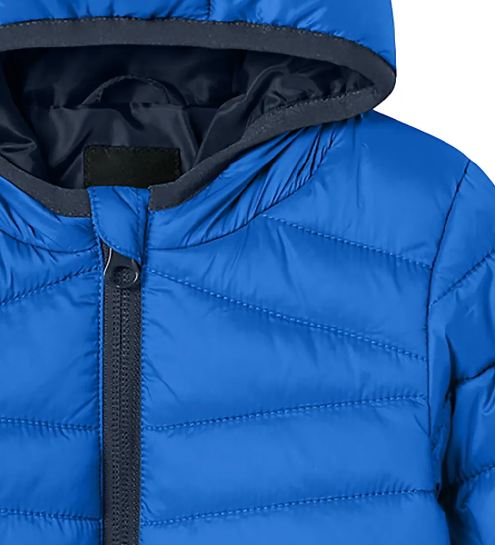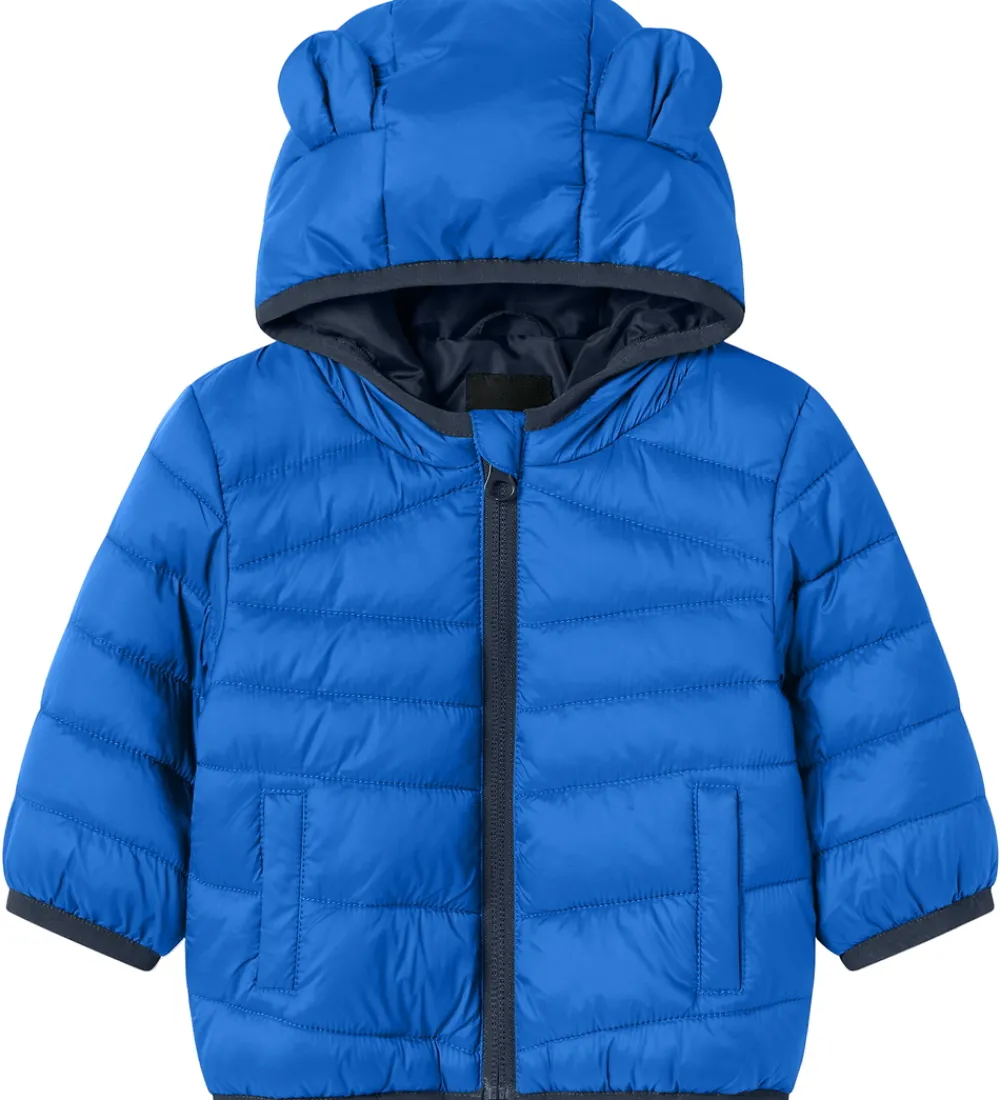 Fin Name It dynejakke i en klar blå nuance, der tilføjer et friskt udtryk. Dynejakken har en sød hætte med bjørneører og tilbyder en moderne, quiltet struktur. Lange ærmer sikrer ekstra dækning, og ribkanter ved ærmeafslutningerne giver en komfortabel pasform.