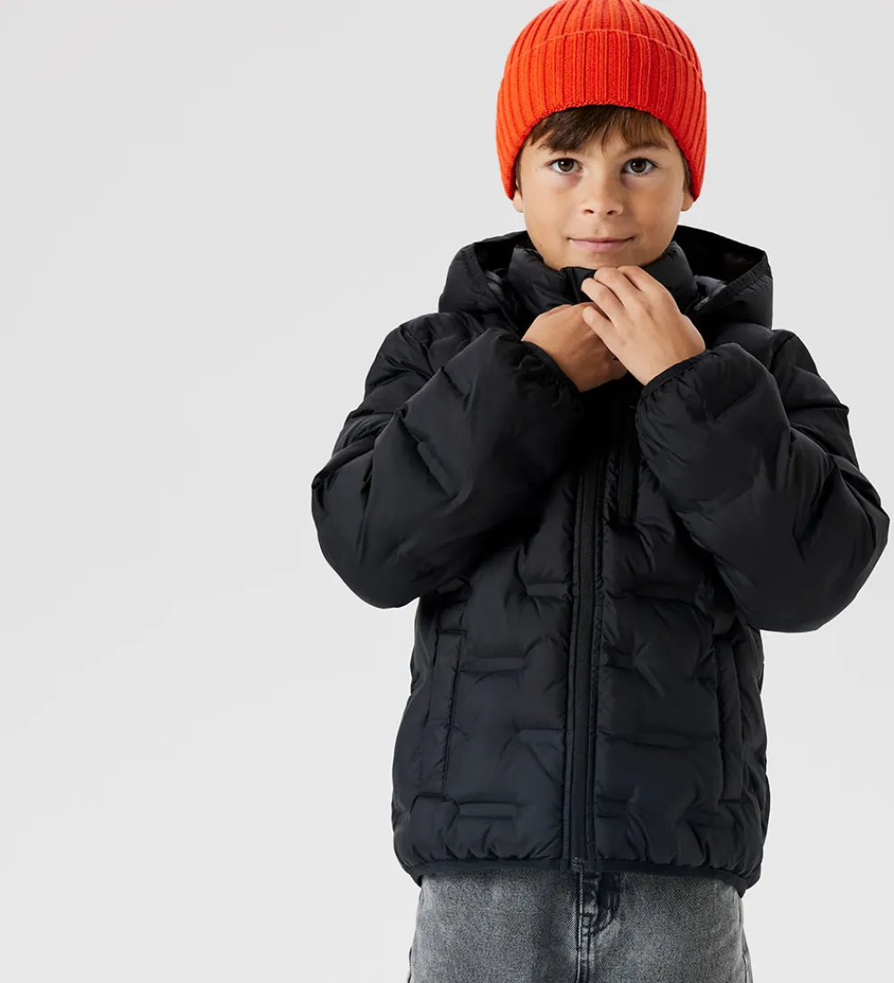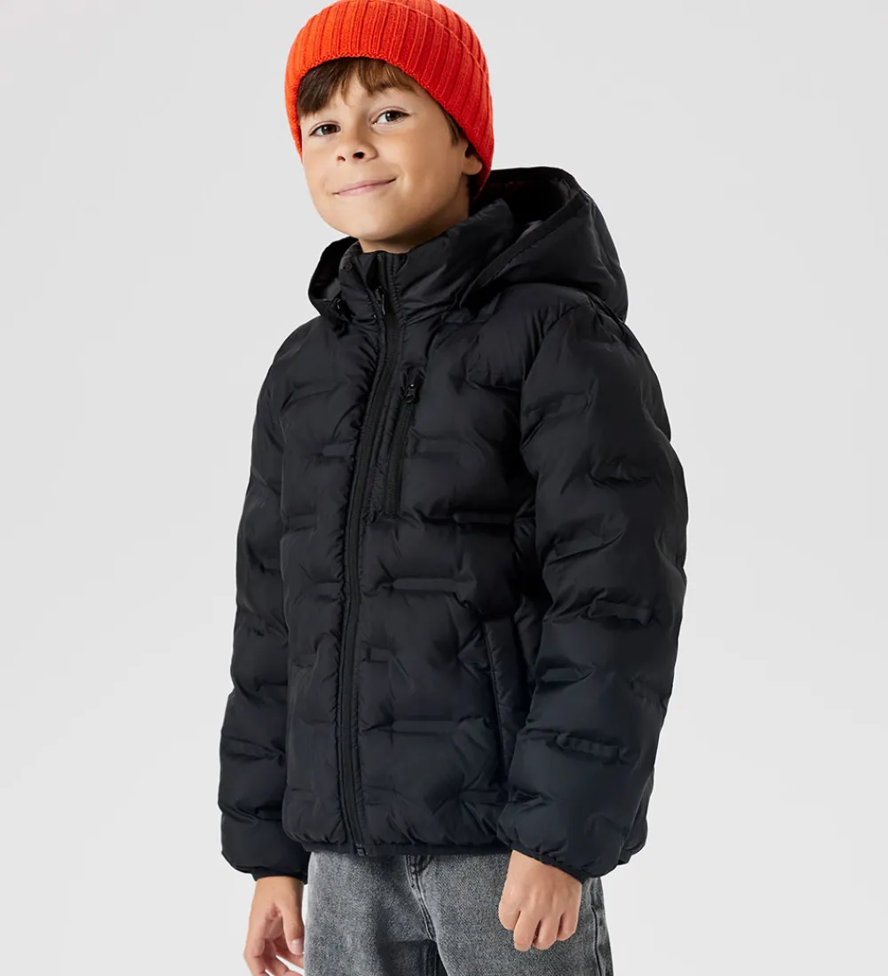 Elegant Name It dynejakke i klassisk sort. Designet er enkelt og stilrent, hvilket bidrager til en tidløs udstråling. Dynejakken har en indpræget, quiltet struktur.