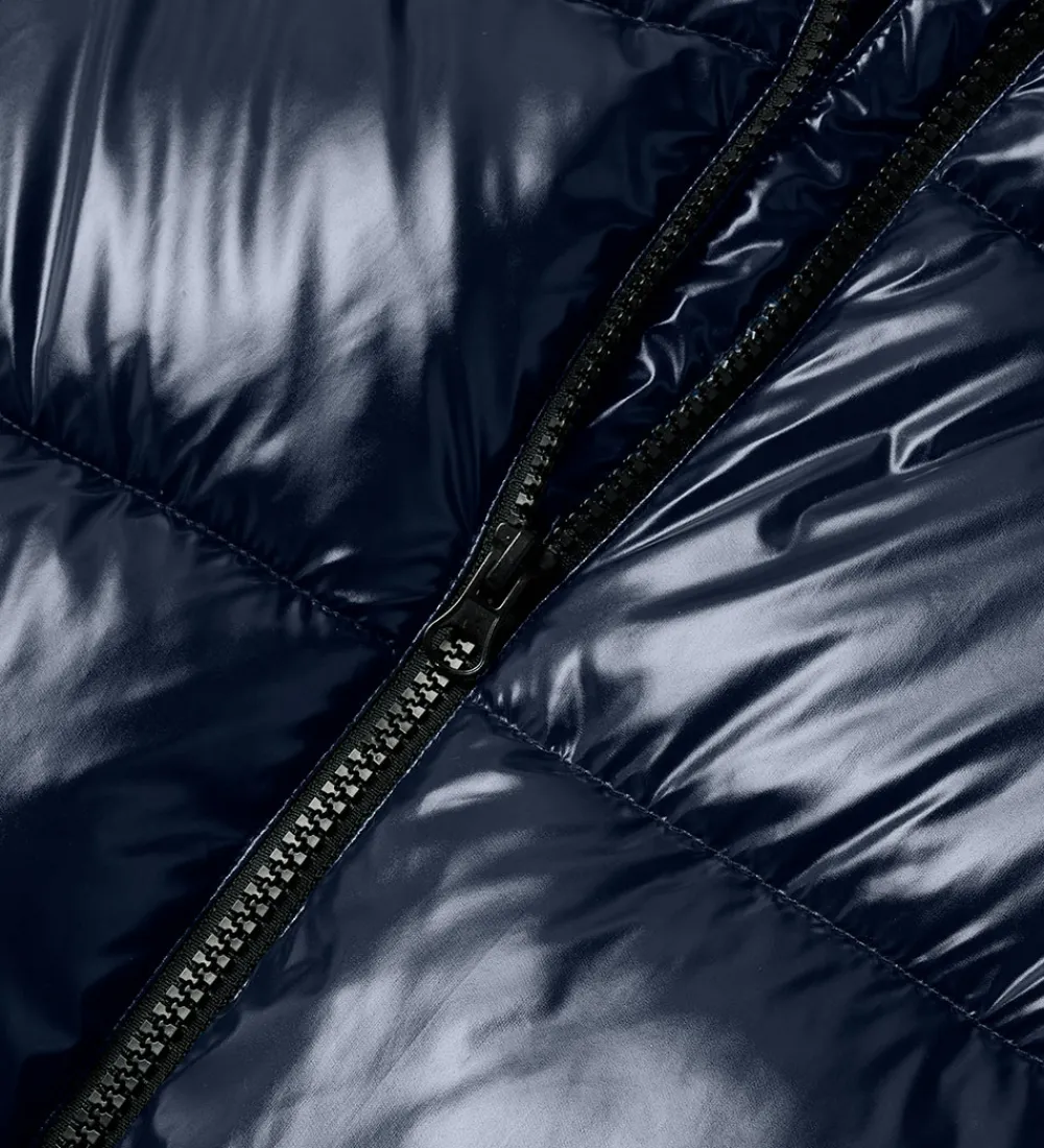 Smart LMTD dynejakke i ensfarvet navy med en skinnende overflade.