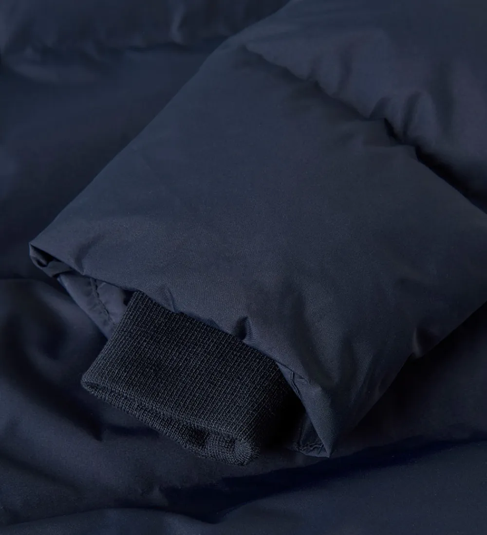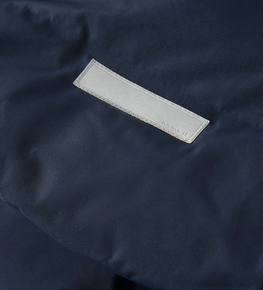 Flot Name It dynejakke i navy med en indpræget struktur i vandrette linjer. Dynejakken er med praktiske reflekser.