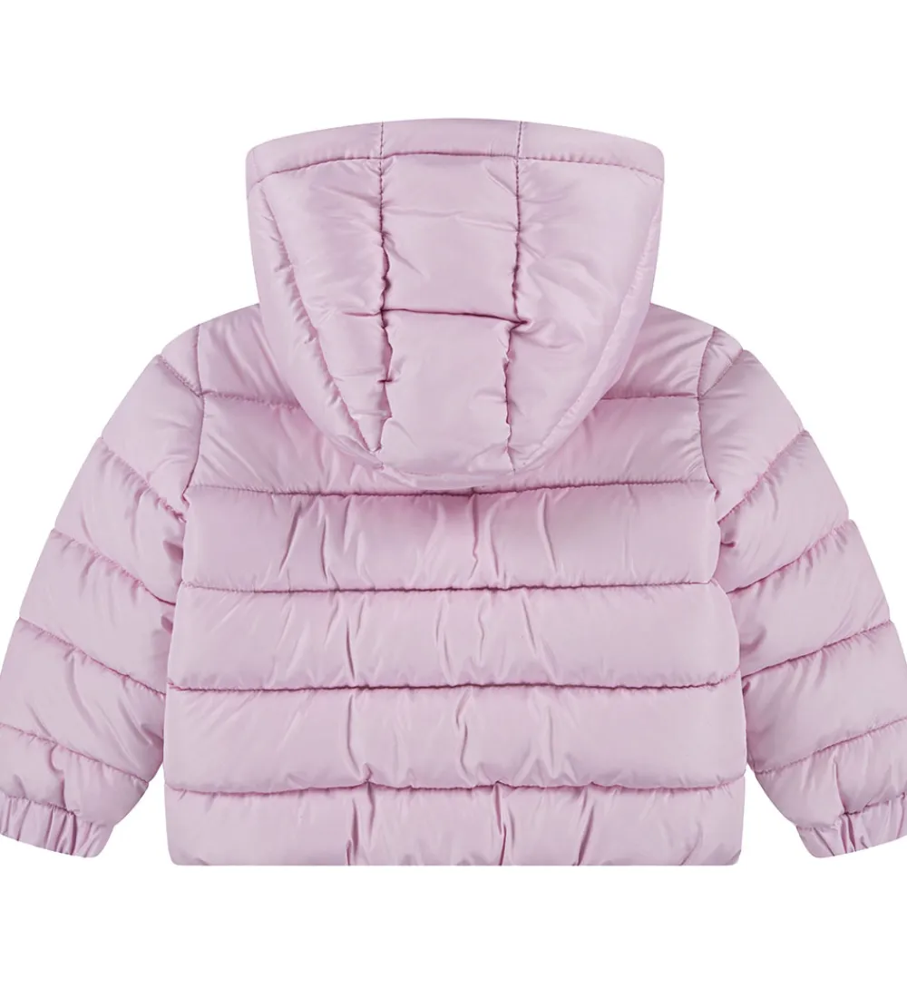 Lækker Nike dynejakke i rosa med et broderet, hvidt logo på venstre bryst og skrå syninger.