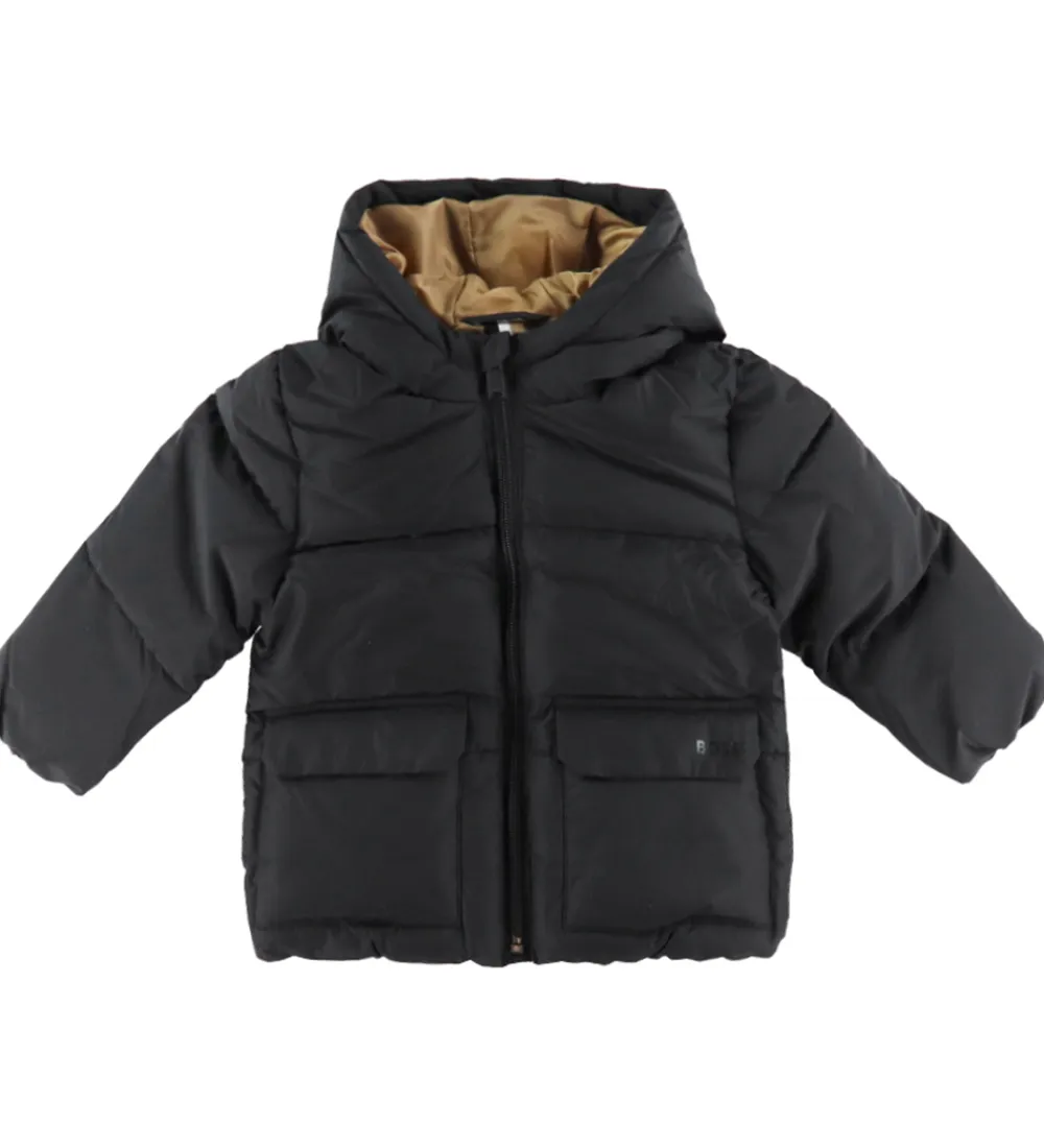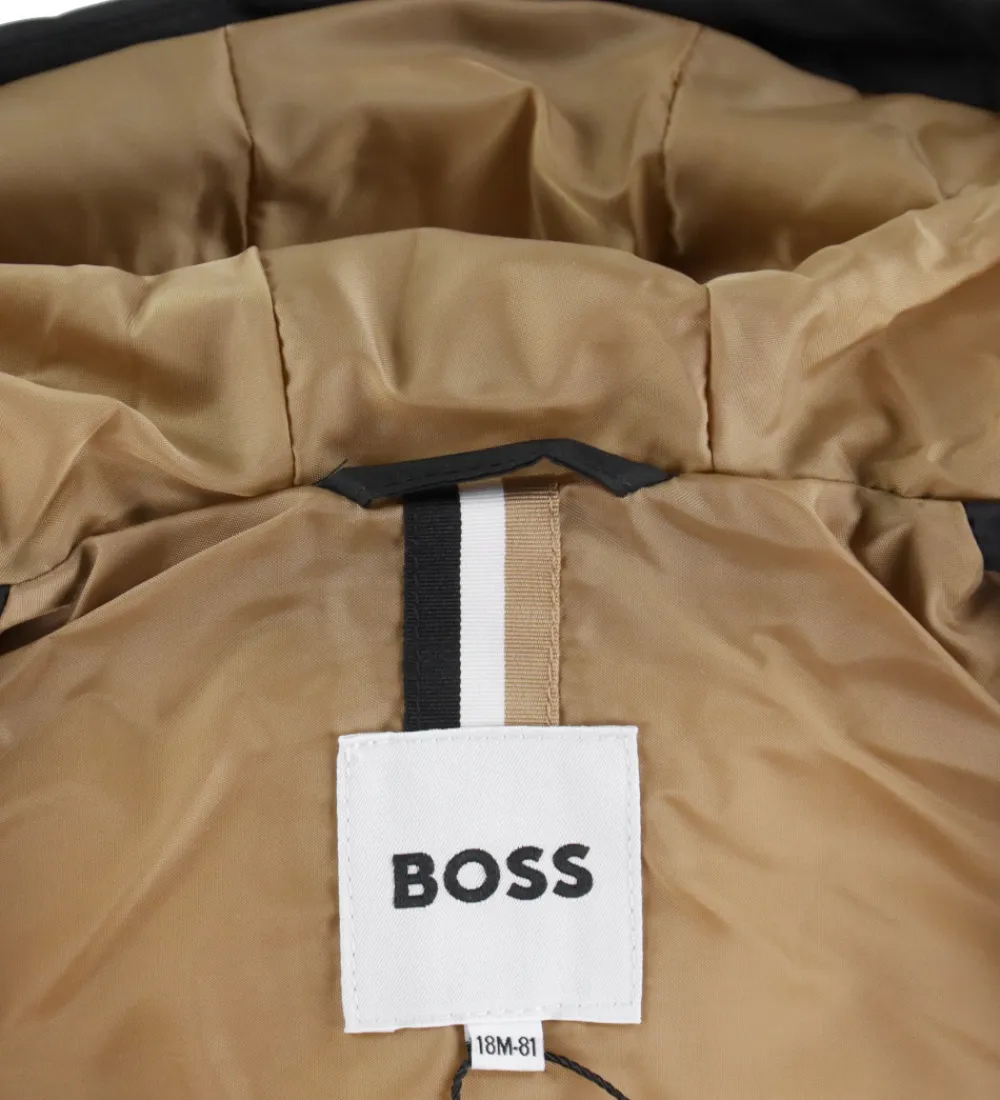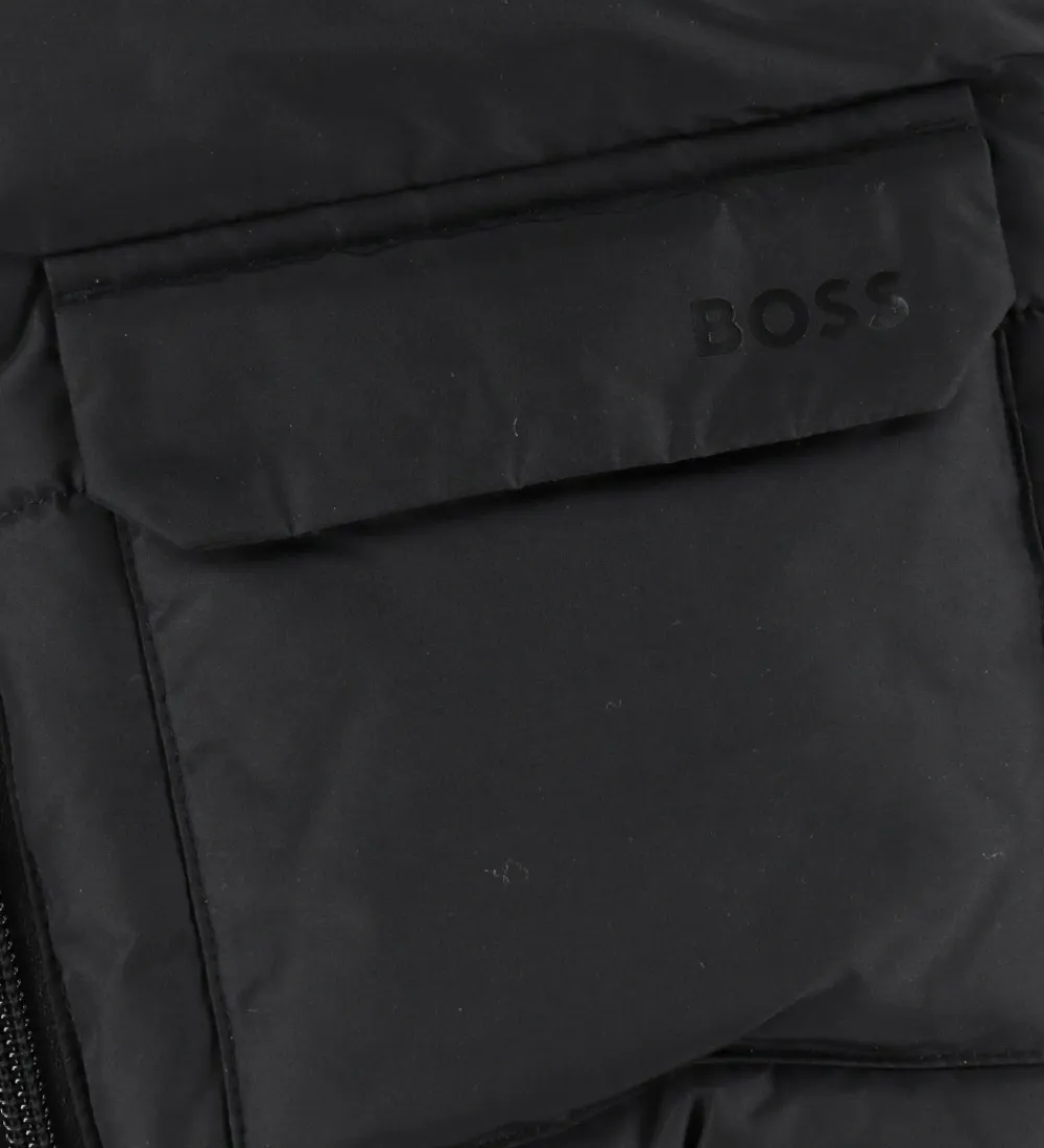 Lækker BOSS dynejakke i ensfarvet sort i en glatvævet kvalitet med vandrette syninger.