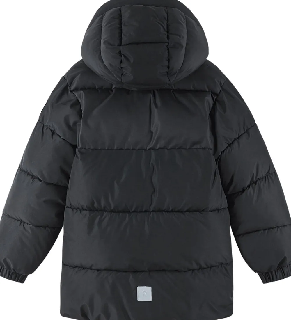 Reima dynejakken har en aftagelig hætte, som sidder fast med skjulte trykknapper omkring den høje halskrave, og ærmerne har praktiske elastikanter i åbningerne.