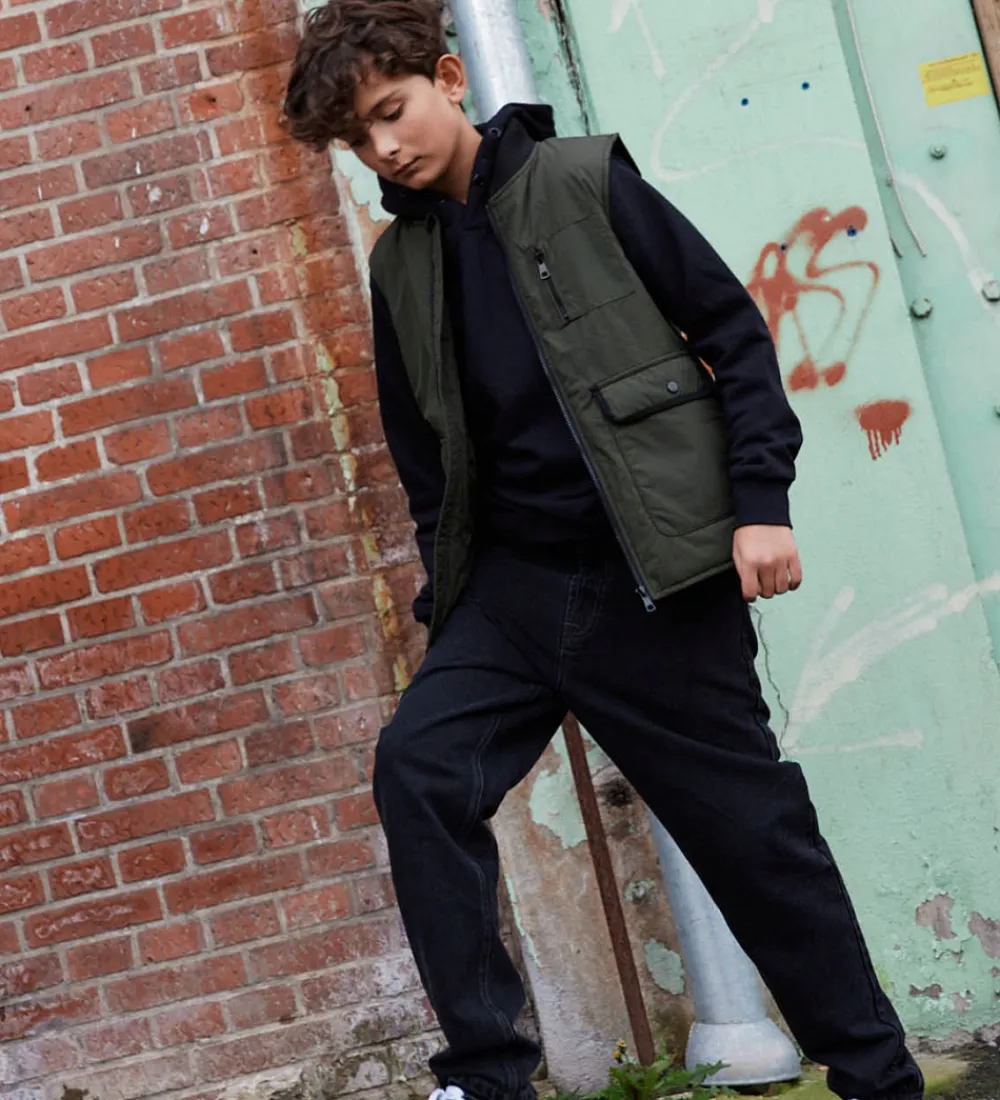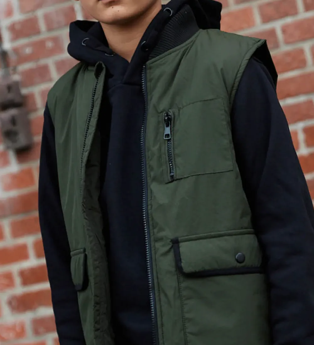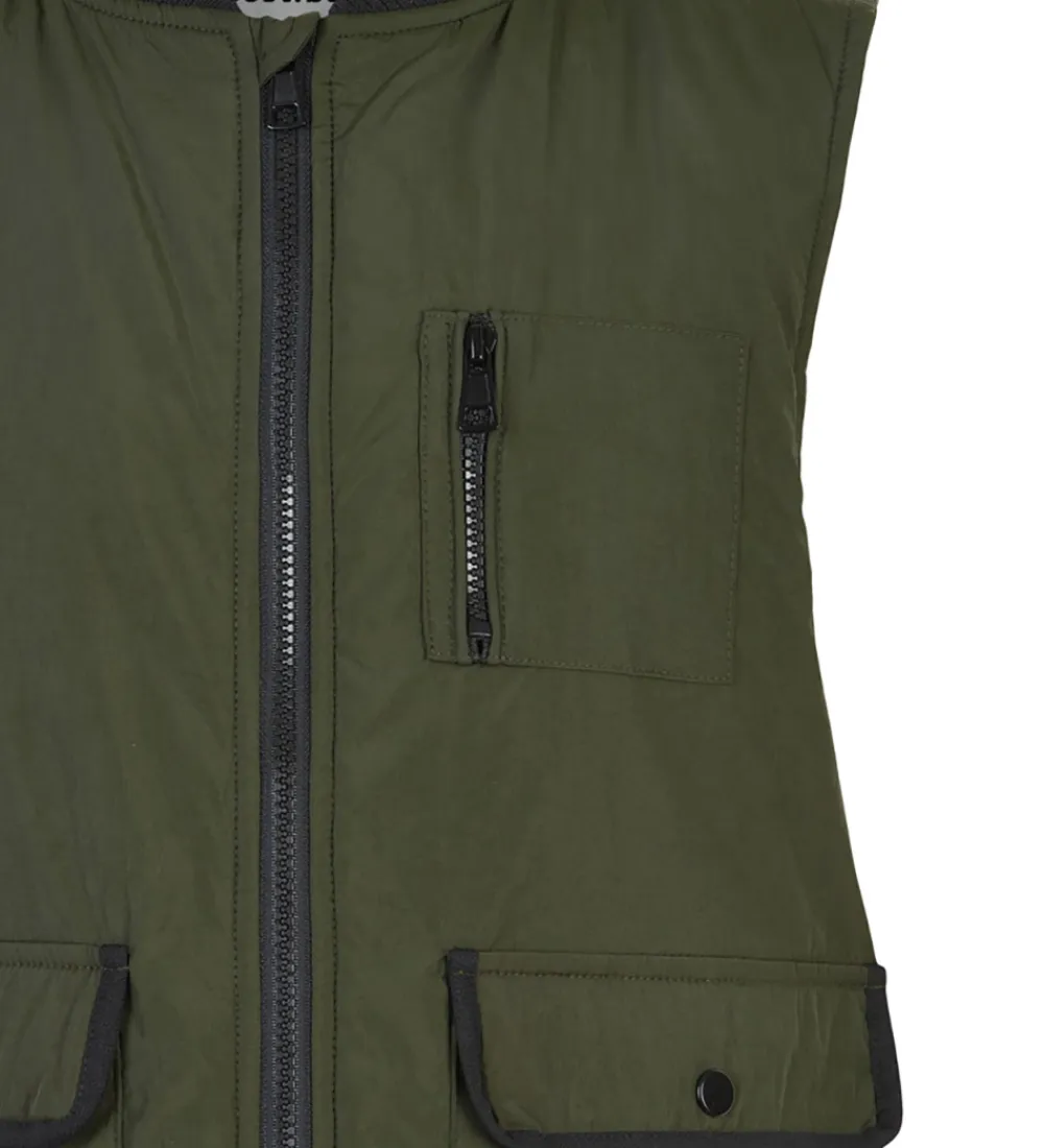 Skøn Cost:Bart dynevest i mørk armygrøn, med sorte detaljer.