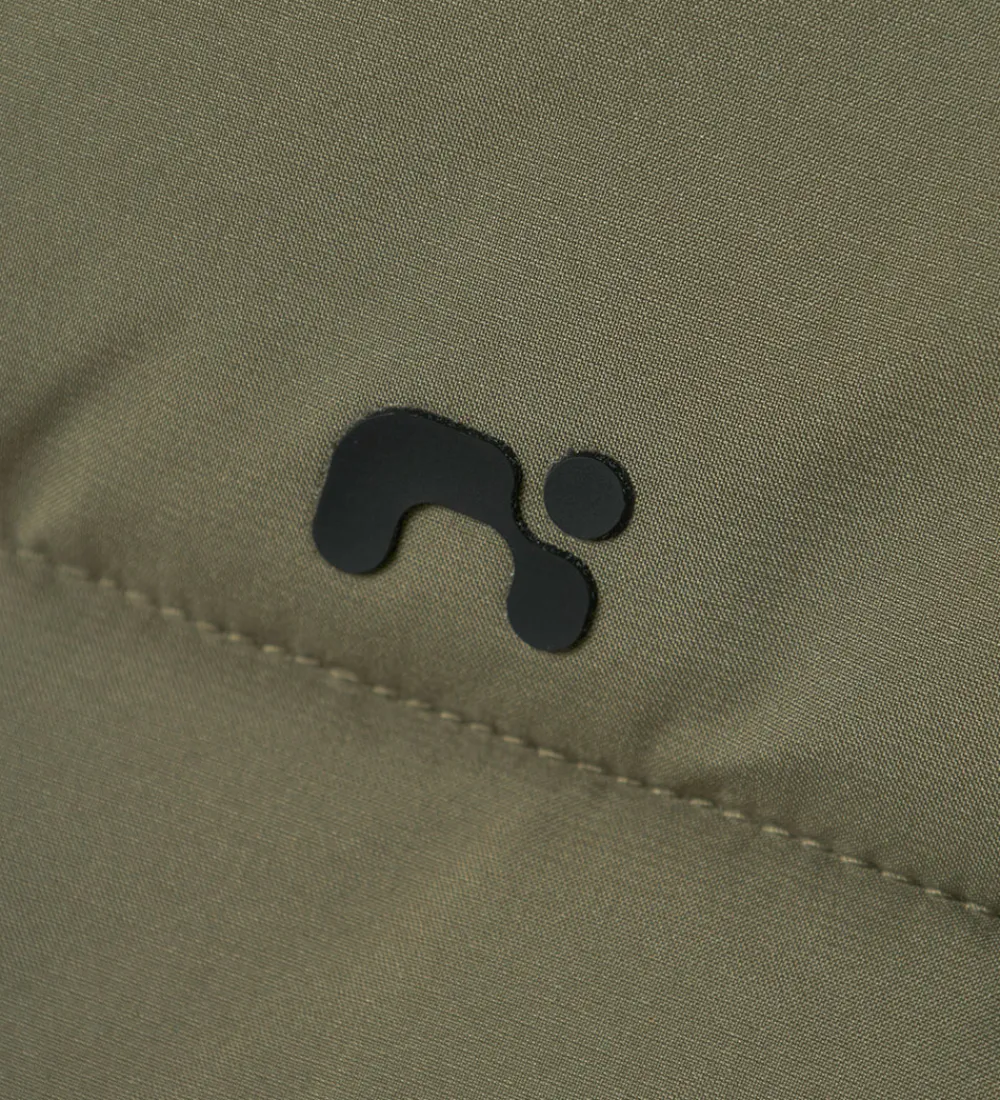 Skøn Name It dynevest i støvet olivengrøn med vandrette syninger og et lille logo på venstre bryst.